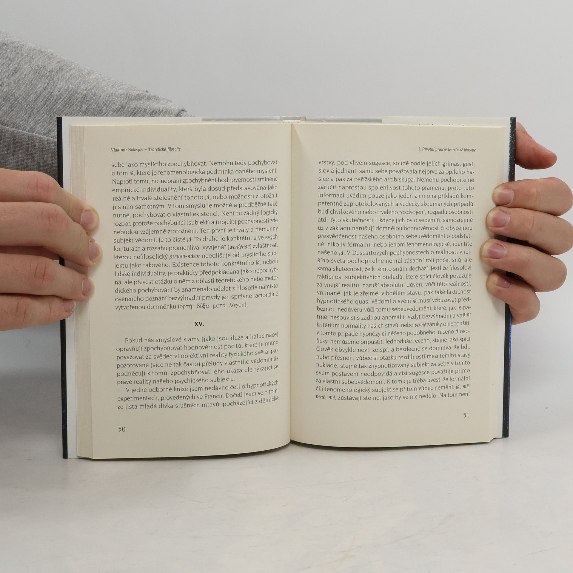 Vydání této nedokončené práce ze sklonku autorova života (sepisované v letech 1897-1899 a publikováné časopisecky v magazínu Вопросы философии и психологии) navazuje na předchozí solovjovskou řadu. Tři stati významného ruského křesťanského filozofa zkoumají gnozeologickou problematiku. První stať prostřednictvím interpretace Descarta dochází k závěru, že relativizace ontologie znamená ztotožnění s neuchopitelnými eventualitami různých zaměnitelných východisek. Druhá v rámci hledání podstaty jazyka zdůrazňuje, že jazyk vyžaduje určité východisko, pozadí slova, neboť jinak sám sebe destruuje! Závěrečná stať kritizuje tzv. absolutní systémy jako přežité, poněvadž sama ontologie předpokládá personalitu.... celý text