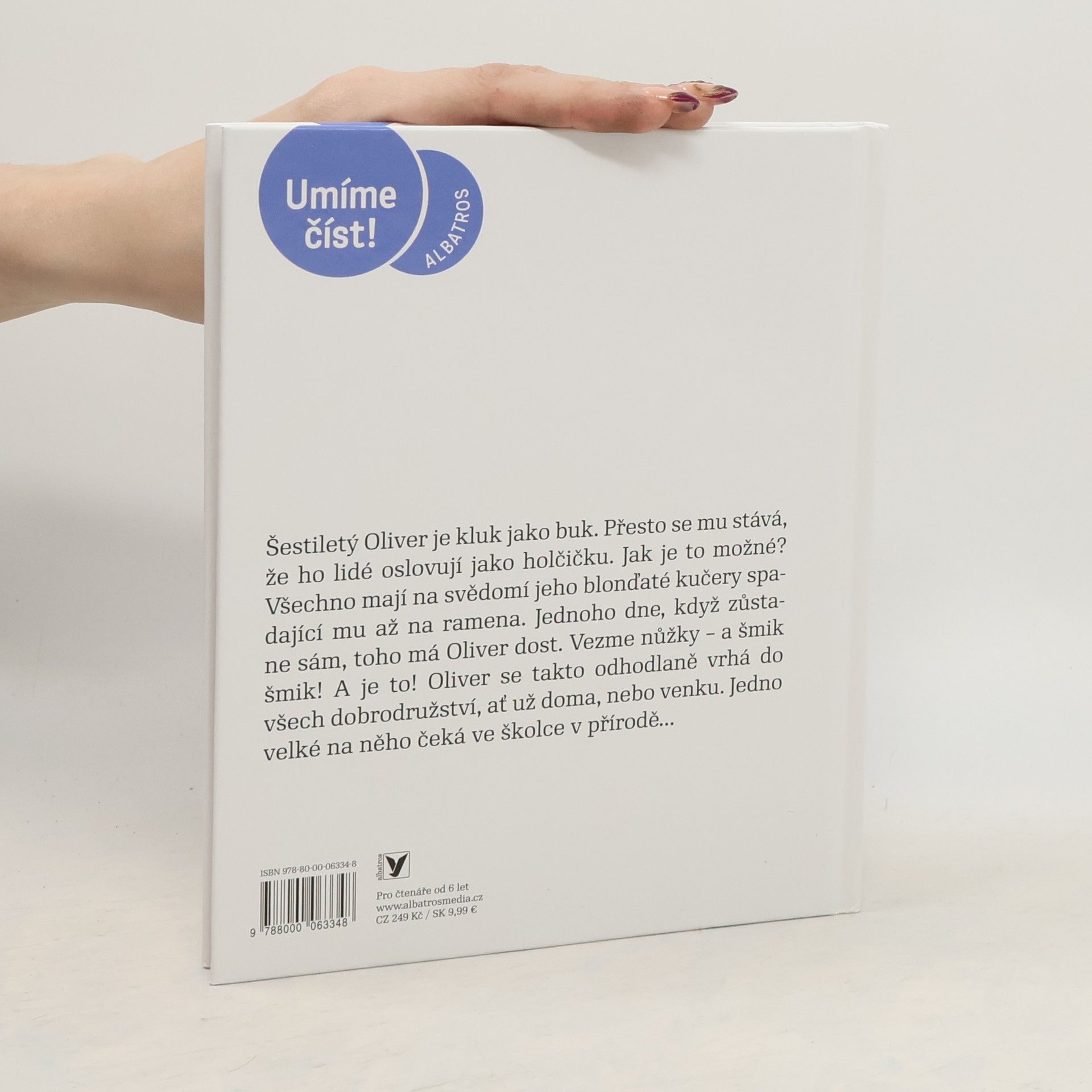 Oliver je roztomilý šestiletý kluk – ale má potíž: vypadá jako holka. Oliverova maminka totiž zbožňuje jeho zlaté kučery až na ramena a za žádnou cenu mu je nechce dát ostříhat. Zato Oliver je nenávidí, protože ti, kdo ho neznají, ho neustále oslovují: Ty jsi ale hezká holčička! A když se mu konečně narodila sestřička a maminka musela zůstat v porodnici, musel Oliver zatím počkat u sousedky. Jak to dopadlo? Využil čas na další rošťárny?