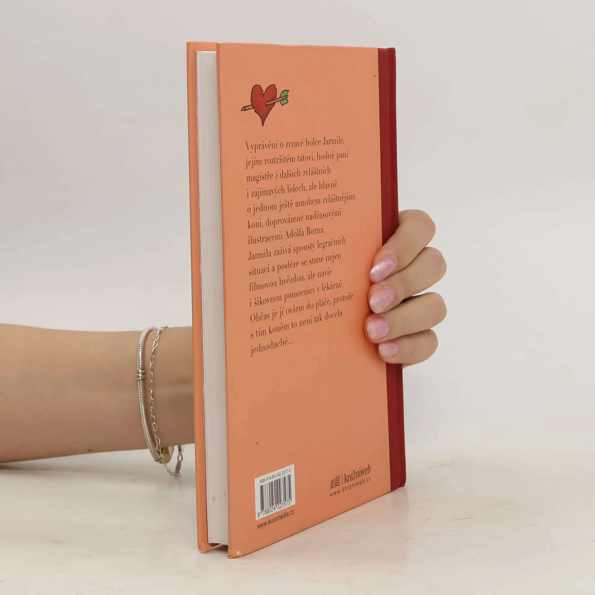 Vyprávění o zrzavé holce Jarmile, jejím roztržitém tátovi, hodné paní magistře i dalších zvláštních i zajímavých lidech, ale hlavně o jednom ještě mnohem zvláštnějším koni. Jarmila zažívá spousty legračních situací a posléze se stane nejen filmovou hvězdou, ale navíc i šikovnou pomocnicí v lékárně. Občas je jí ovšem do pláče, protože s tím koněm to není tak docela jednoduché... Mladým čtenářkám bude knížka jistě blízká, ale i jejich maminkám leccos z dřívějška připomene. Poprvé totiž vyšla už v roce 1976, bohužel ne pod jménem autorky, která tehdy nesměla publikovat. Poutavé čtení o lásce a holčičích trampotách, plné vtipu a humorných situací, lety nijak neztratilo na půvabu.
