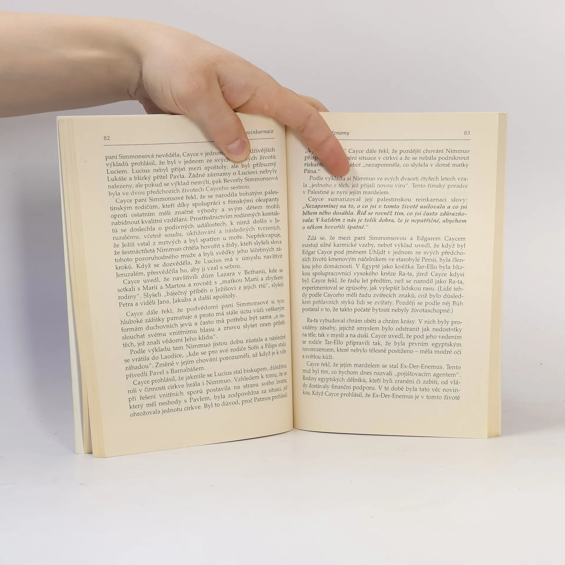 Významná věděcká pracovnice, jejíž jméno je většině Američanů známé, se před desítkami let začala zajímat o reinkarnaci a to díky tříletému chlapci, který byl ve spontánním transu schopen hovořit plynně německy a persky. Tento jazyk jak on, tak ani jeho rodiče za bdělého stavu neznali. Odborníci, kteří se chlapcem zabývali prohlásili, že hovoří němčinou, která byla v Německu používána v 16. století. Jeho perština byla o dvě století starší. Pravdivost většiny životů popsaných během hypnotické regrese nelze dokázat. Pokud se jistá tvrzení ukážou jako pravdivá, pak je snazší přijmout i zbytek poskytnutého materiálu v této knize.