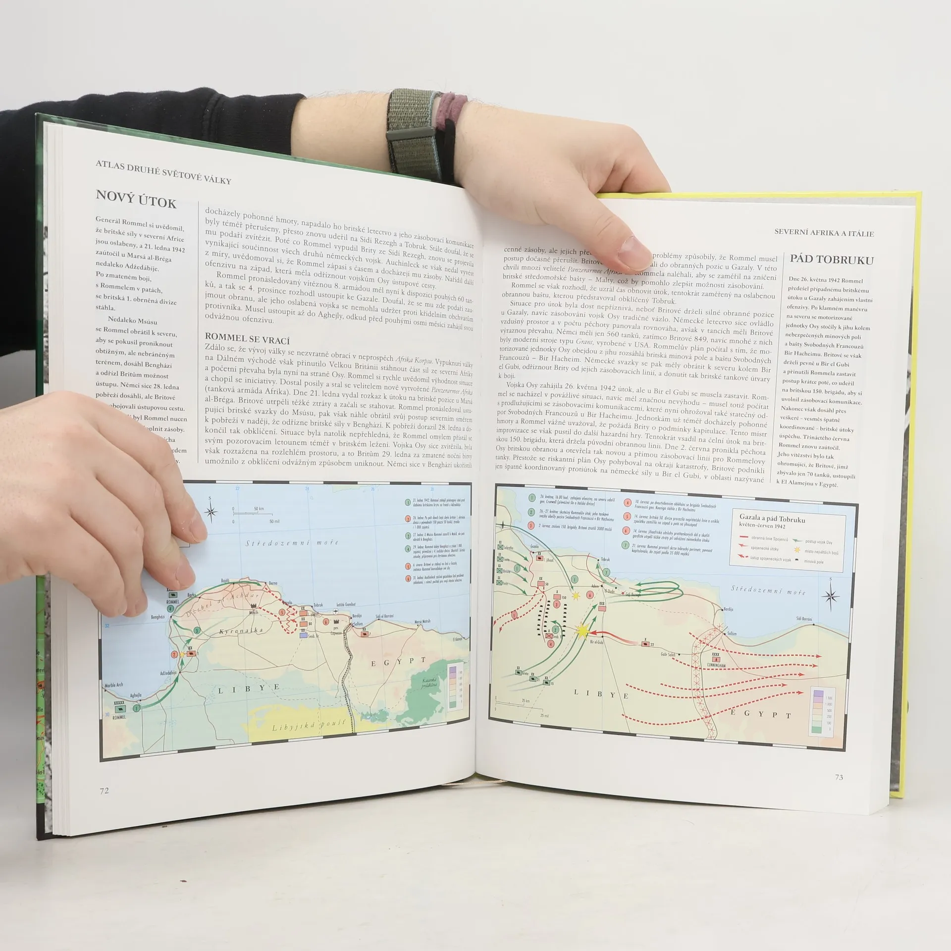 Atlas barevných map nejvýznamnějších operací a bitev doplňují dobové fotografie z bojišť 2. světové války.
