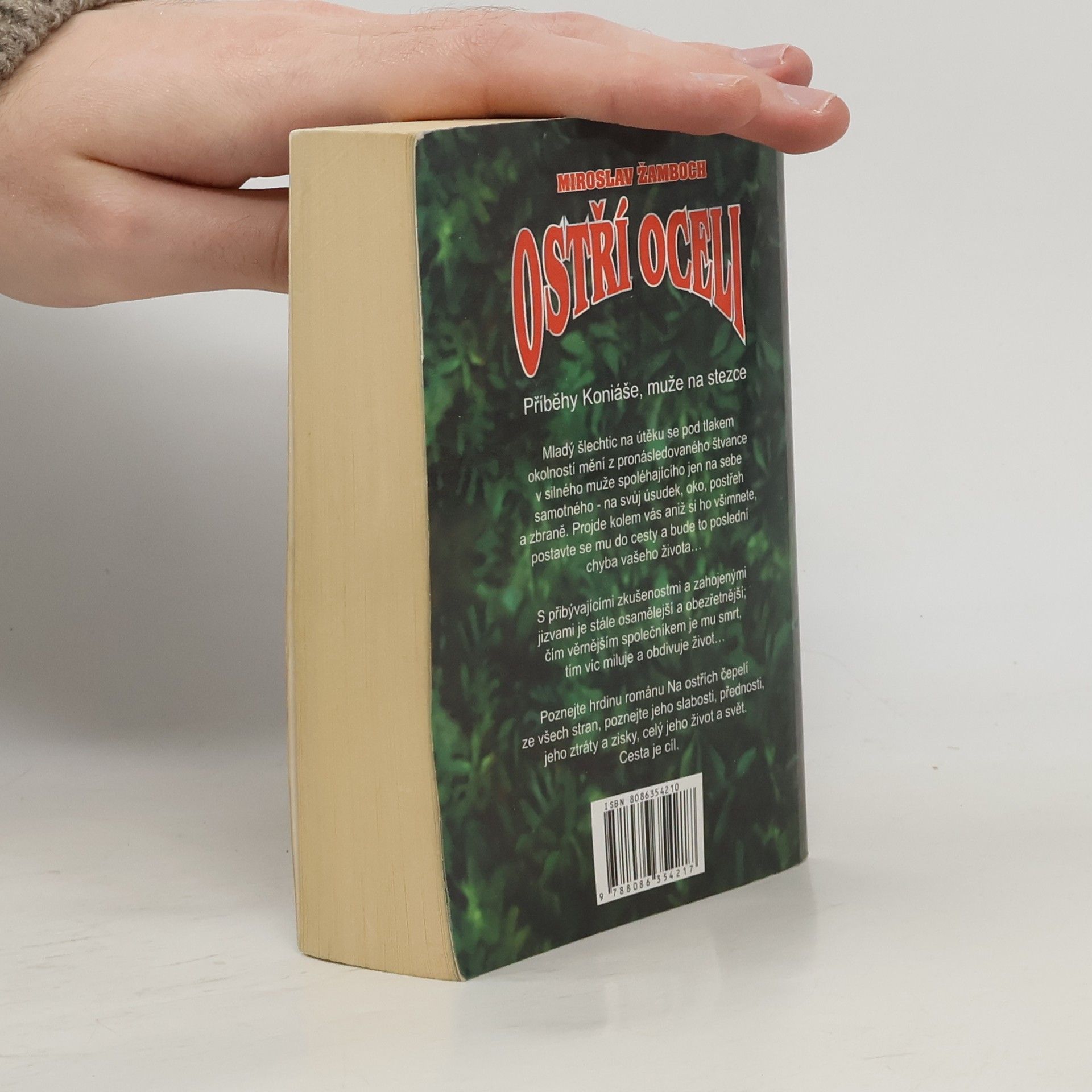 Mladý šlechtic na útěku se pod tlakem okolností mění z pronásledovaného štvance v silného muže spoléhajícího jen na sebe samotného – na svůj úsudek, oko, postřeh a zbraně. Projde kolem vás aniž si ho všimnete, postavte se mu do cesty a bude to poslední chyba vašeho života… S přibývajícími zkušenostmi a zahojenými jizvami je stále osamělejší a obezřetnější; čím věrnějším společníkem je mu smrt, tím víc miluje a obdivuje život… Poznejte hrdinu románu Na ostřích čepelí ze všech stran, poznejte jeho slabosti, přednosti, jeho ztráty a zisky, celý jeho život a svět. Cesta je cíl. Příběhy Koniáše, muže na stezce. Povídky: - Až na dno - Cherchez la Femme - Štěstí z pekla - Lovci odměn - Fanoušek - Smaragdova hora - Pouštní škorpión - Špatná investice - Drsná hra - Vysoký příliv