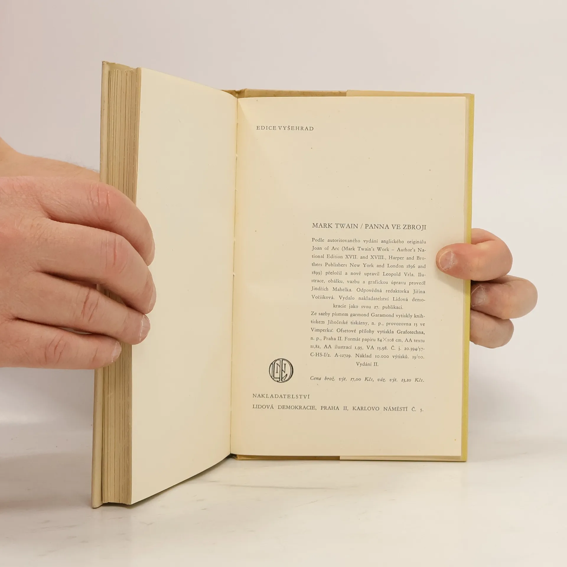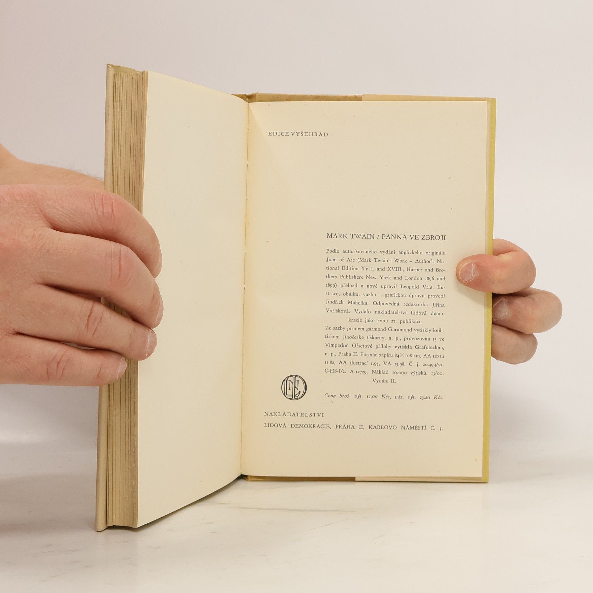 Panna ve zbroji, Mark Twain, Leopold Vrla, Jindřich Mahelka