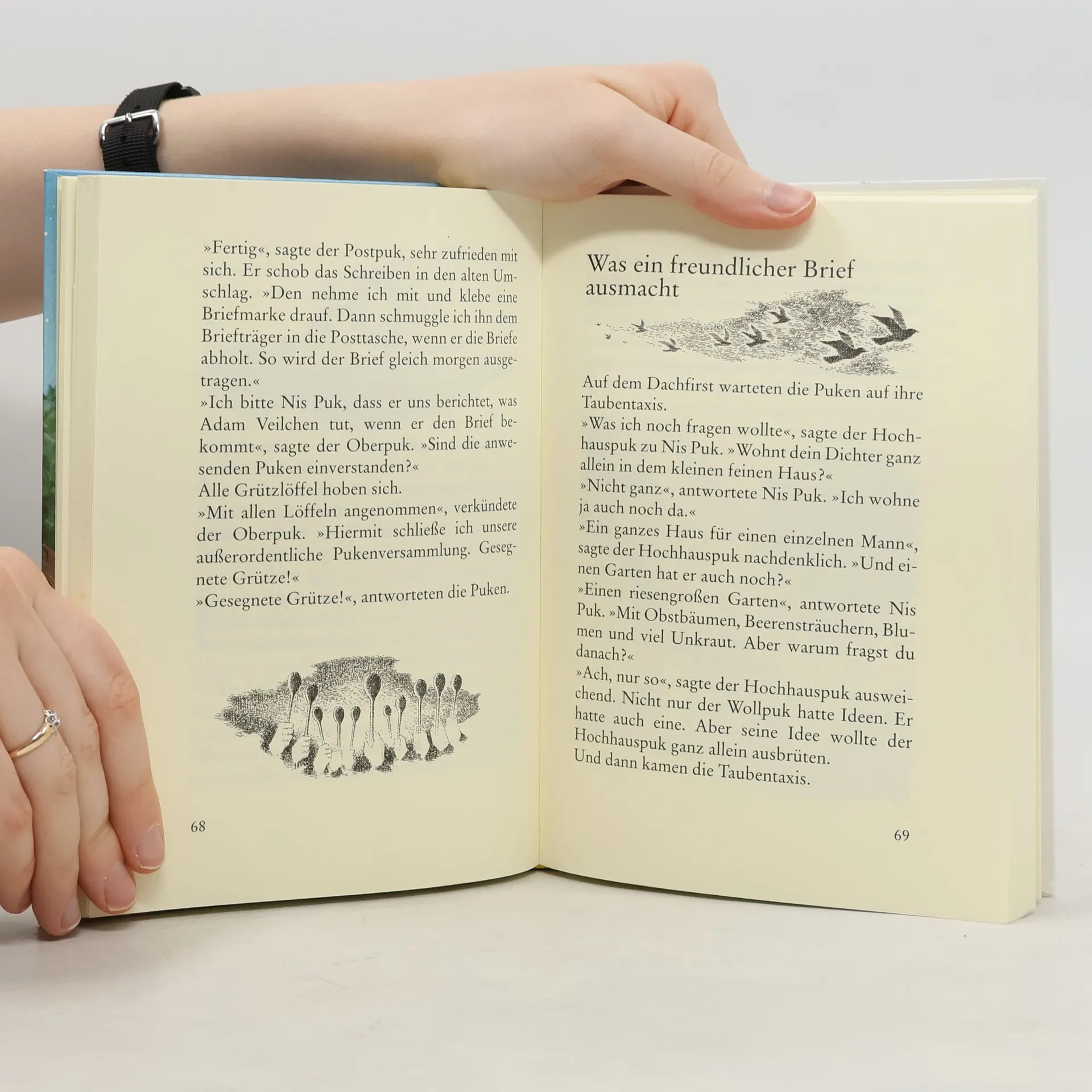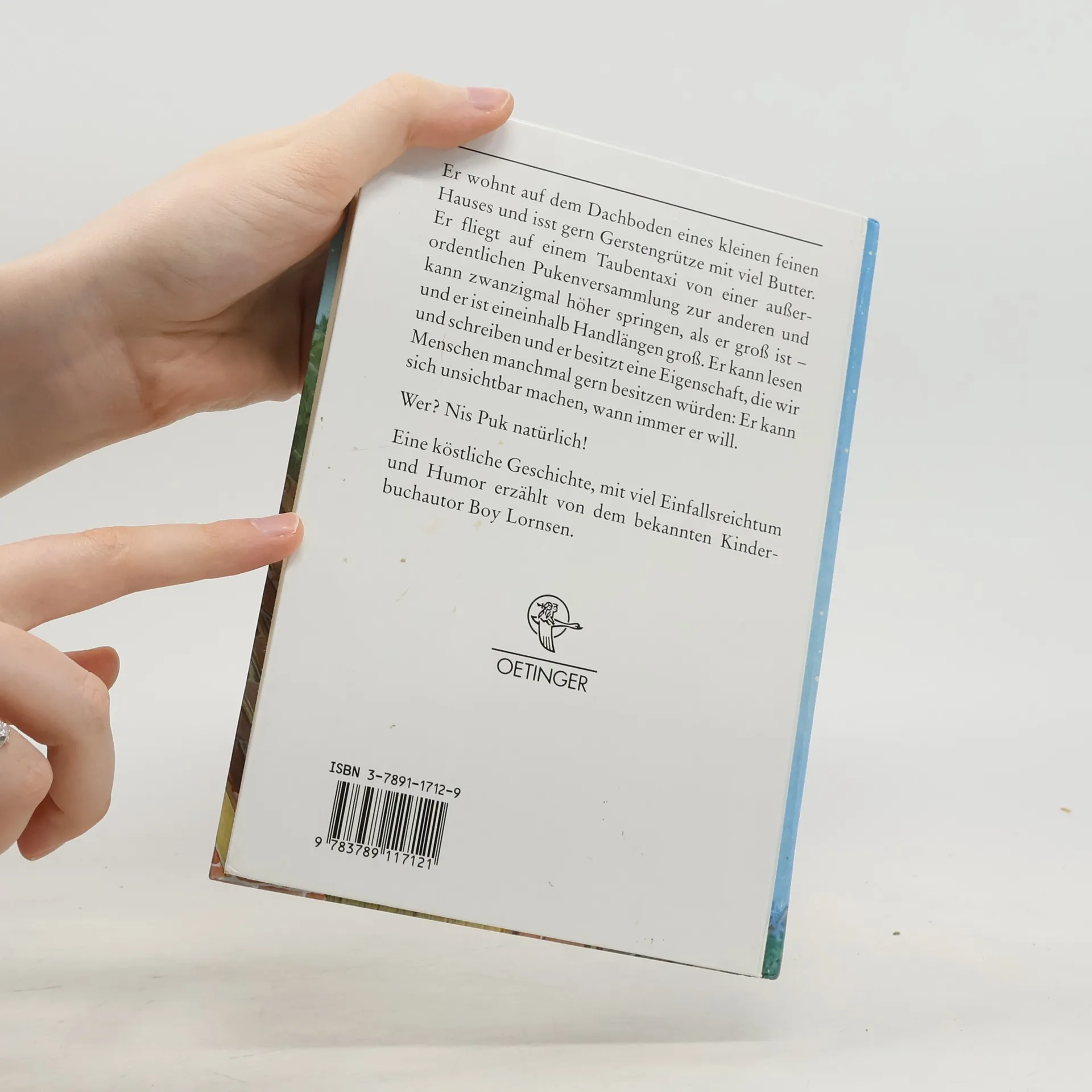 Er wohnt auf dem Dachboden eines kleinen feinen Hauses und isst gern Gerstengrütze mit viel Butter. Er fliegt auf einem Taubentaxi von einer außerordentlichen Pukenversammlung zur anderen und kann zwanzigmal höher springen, als er groß ist - und er ist eineinhalb Handlängen groß. Er kann lesen und schreiben, und er besitzt eine Eigenschaft, die wir Menschen manchmal gern besitzen würden: Er kann sich unsichtbar machen, wann immer er will. Wer? Nis Puk natürlich!