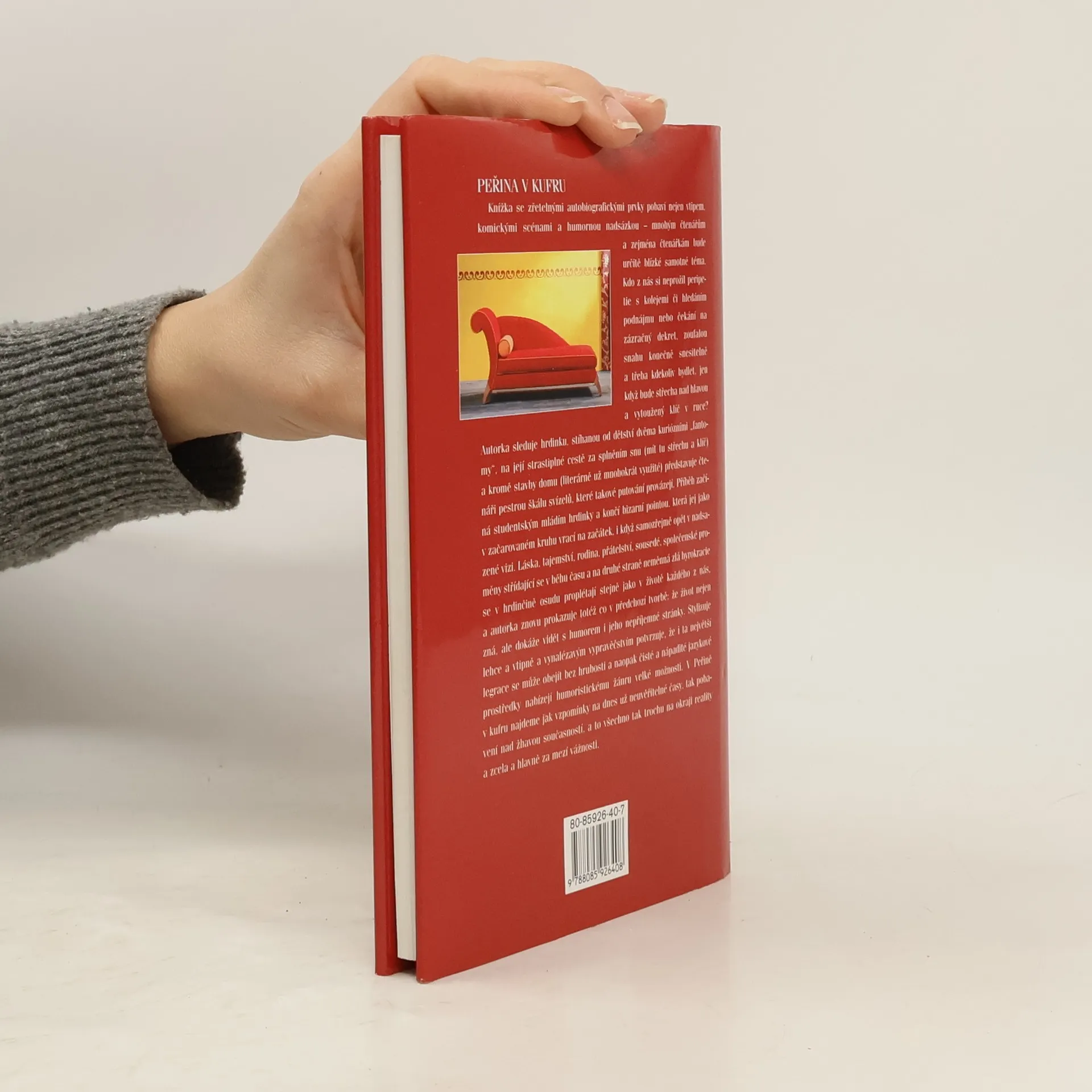 Knížka se zřetelnými autobiografickými prvky pobaví nejen vtipem, komickými scénami a humornou nadsázkou - mnohým čtenářům a zejména čtenářkám bude určitě blízké samotné téma. Kdo z nás si neprožil peripetie s kolejemi či hledáním podnájmu nebo čekání na zázračný dekret, zoufalou snahu konečně snesitelně a třeba kdekoliv bydlet, jen když bude střecha nad hlavou a vytoužený klíč v ruce? Autorka sleduje hrdinku, stíhanou od dětství dvěma kuriózními "fantomy", na její strastiplné cestě za splněním snu (mít tu střechu a klíč) a kromě stavby domu (literárně už mnohokrát využité) představuje čtenáři pestrou škálu svízelů, které takové putování provázejí. Příběh začíná studentským mládím hrdinky a končí bizarní pointou, která jej jako v začarovaném kruhu vrací na začátek, i když samozřejmě opět v nadsazené vizi. Láska, tajemství, rodina, přátelství, sousedé, společenské proměny střídající se v běhu času a na druhé straně neměnná zlá byrokracie se v hrdinčině osudu proplétají stejně jako v životě každého z nás, a autorka znovu prokazuje totéž co v předchozí tvorbě: že život nejen zná, ale dokáže vidět s humorem i jeho nepříjemné stránky. V Peřině v kufru najdete jak vzpomínky na dnes už neuvěřitelné časy, tak pobavení nad žhavou současností, a to všechno tak trochu na okraji reality a zcela a hlavně za mezí vážnosti.