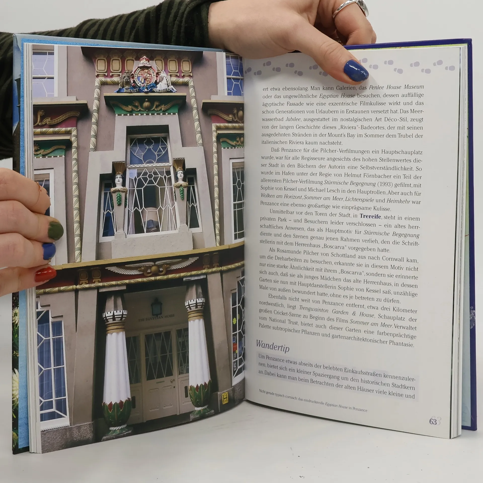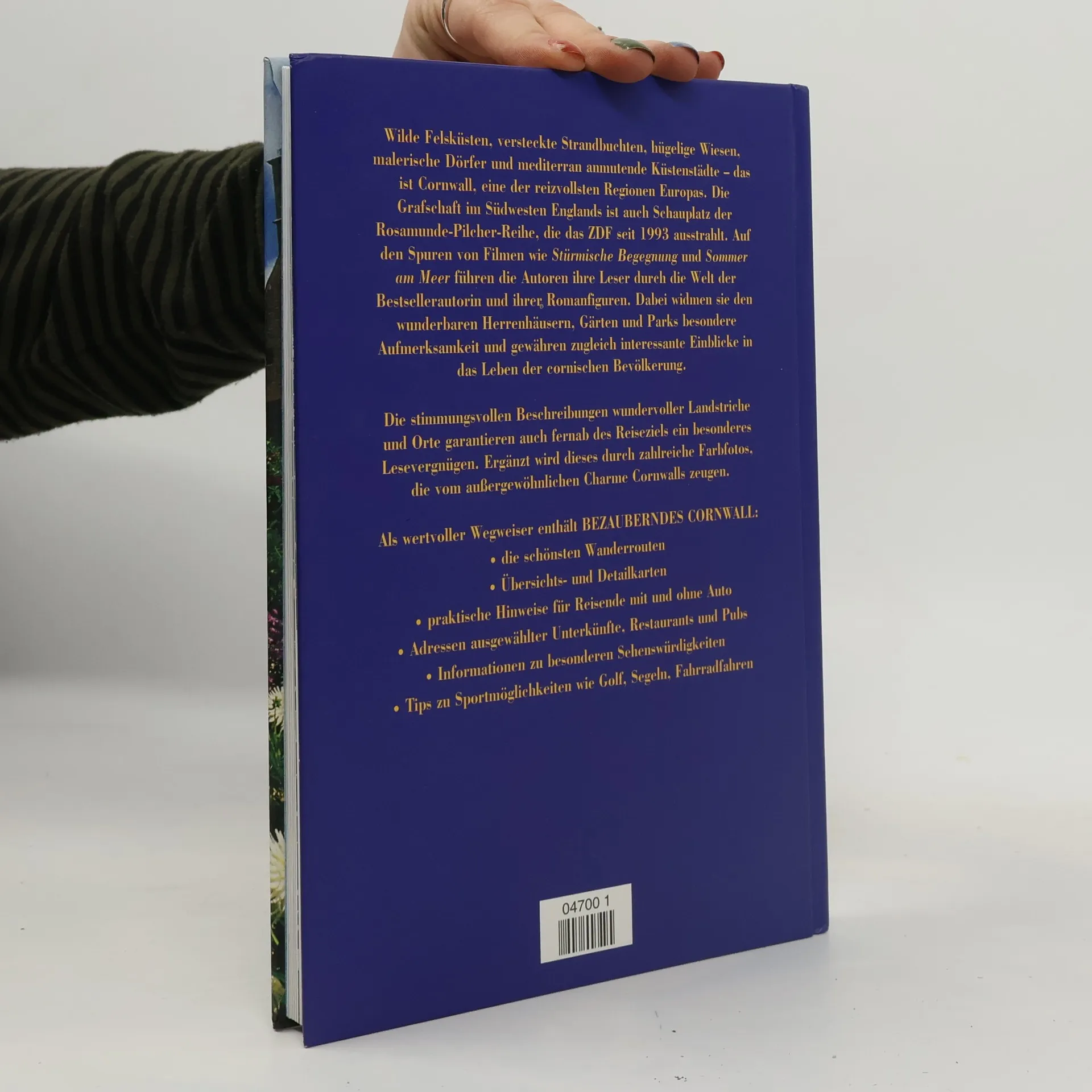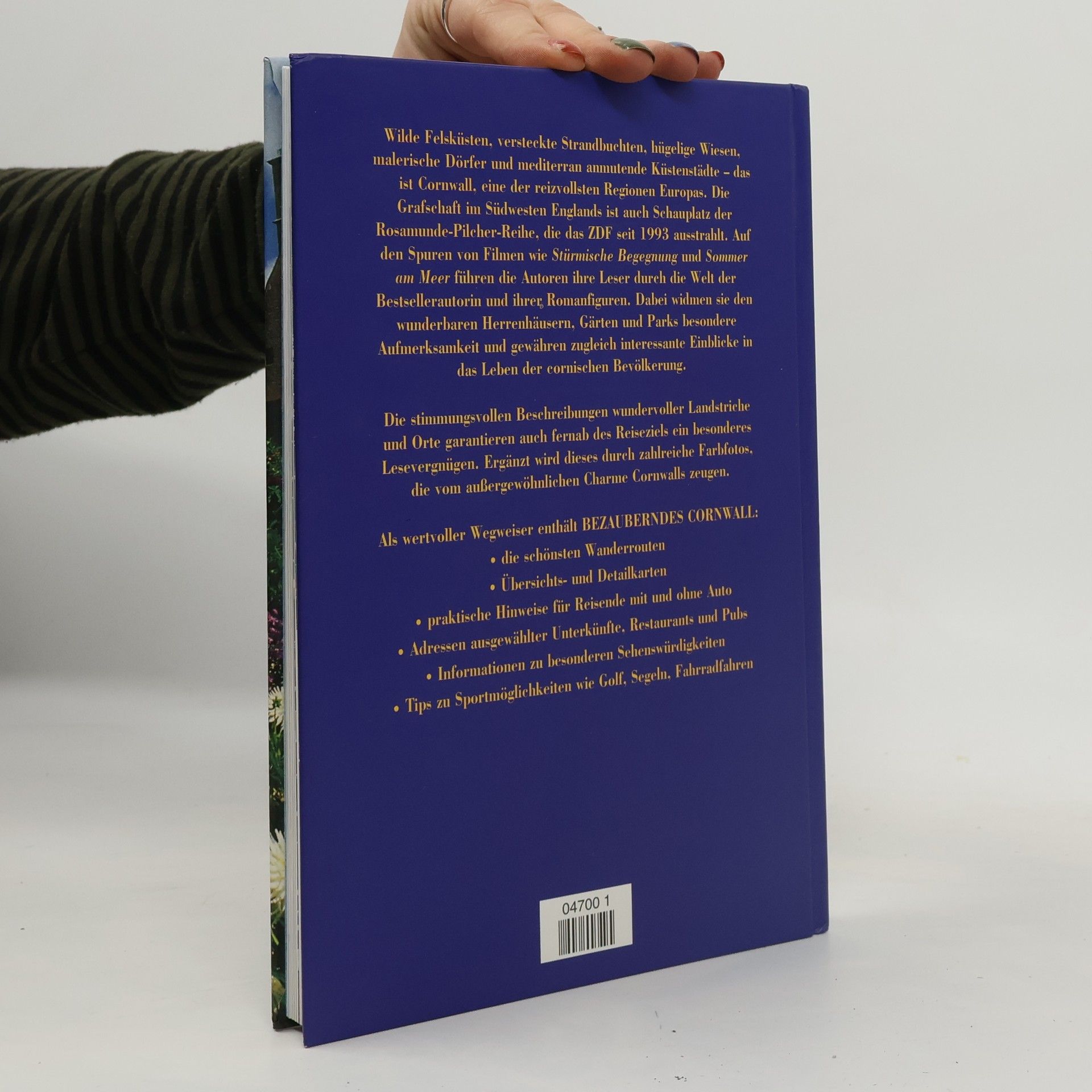 Bei Rosamunde Pilcher liebt er sie ganz bestimmt, wenn auch erst nach einigen Wirren des Schicksals. Auch noch so abgeklärte Zeitgenossen genießen die voraussagbaren Filme der englischen Bestseller-Autorin wegen ganz anderen schöne Menschen mit wunderschönen Landsitzen an allerschönsten Orten Cornwalls. Womit wir auch schon beim Thema dieses Buches wä Wilde Felsküsten, versteckte Strandbuchten, hügelige Wiesen, malerische Dörfer und mediterran anmutende Küstenstädte machen den westlichsten Zipfel Englands zur beliebten Urlaubsregion. Bisher eher das Ziel von Gartenreisen, durchqueren die Autoren Cornwall auf den Spuren von Rosamunde Pilcher. Viele der Drehorte sind der Öffentlichkeit zugänglich, aber auch zahlreiche andere sehenswerte Orte säumen die Reiseroute. Ein Hauptaugenmerk gilt natürlich den romantischen Parks und Herrenhäusern. Wunderschöne Fotos vermitteln stimmungsvoll die Atmosphäre der Landschaft. Neben der allgemeinen Information -- die jeder Reiseführer liefern könnte -- gewährt Bezauberndes Cornwall zum ersten Mal Einblicke hinter die Drehkulissen, den Alltag der Stars und Regisseure und die Mauern der Drehorte. Maßgeschneiderte Spaziergänge entlang der Küste runden das Angebot ab. --Werner Tschernoussow