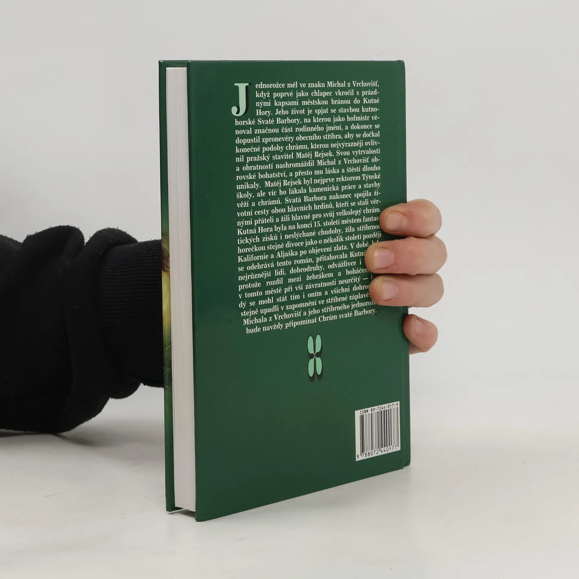 Jednorožce měl ve znaku Michal z Vrchovišť, když poprvé jako chlapec vkročil s prázdnými kapsami městskou bránou do Kutné Hory. Jeho život je spjat se stavbou kutnohorské Svaté Barbory, na kterou jako hofmistr věnoval značnou část rodinného jmění, a dokonce se dopustil zpronevěry obecního stříbra, aby se dočkal konečné podoby chrámu, kterou nejvýrazněji ovlivnil pražský stavitel Matěj Rejsek. Svou vytrvalostí a obratností nashromáždil Michal z Vrchovišť obrovské bohatství, a přesto mu láska a štěstí dlouho unikaly. Matěj Rejsek byl nejprve rektorem Týnské školy, ale víc ho lákala kamenická práce a stavby věží a chrámů. Svatá Barbora nakonec spojila životní cesty obou hlavních hrdinů, kteří se stali věrnými přáteli a žili hlavně pro svůj velkolepý chrám. Kutná Hora byla na konci 15. století městem fantastických zisků i neslýchané chudoby, žila stříbrnou horečkou stejně divoce jako o několik století později Kalifornie a Aljaška po objevení zlata. V době, kdy se odehrává tento román, přitahovala Kutná Hora nejrůznější lidi, dobrodruhy, odvážlivce i snílky, protože rozdíl mezi žebrákem a boháčem byl v tomto městě při vší závratnosti neurčitý - každý se mohl stát tím i oním a všichni dohromady stejně upadli v zapomnění ve stříbrné záplavě. Jen Michala z Vrchovišť a jeho stříbrného jednorožce bude navždy připomínat Chrám svaté Barbory.
