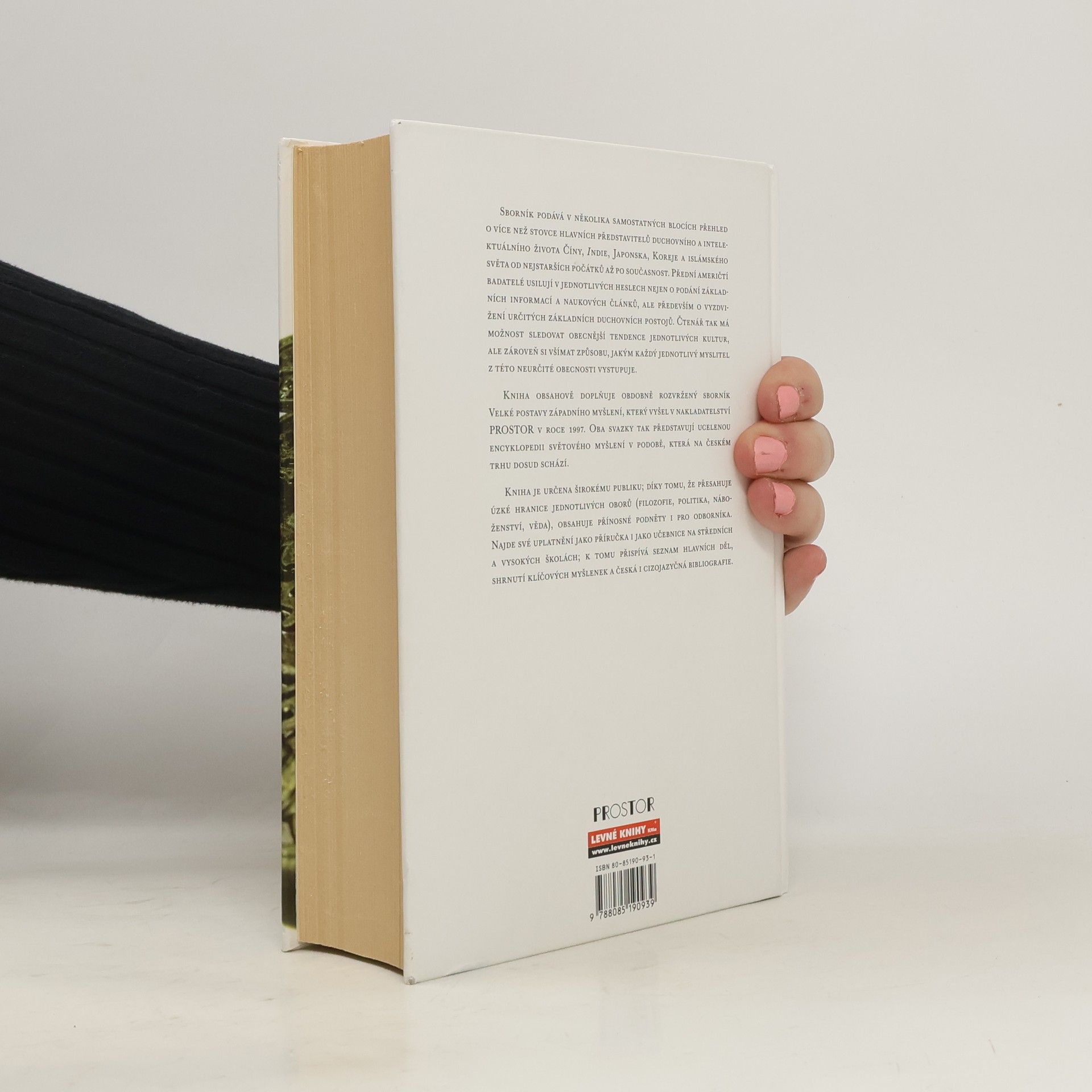 Sborník podává v několika samostatných blocích přehled o více než stovce hlavních představitelů duchovního a intelektuálního života Číny, Indie, Japonska, Koreje a islámského světa od nejstarších počátků až po současnost. Přední američtí badatelé usilují v jednotlivých heslech nejen o podání základních informací a naukových článků, ale především o vyzdvižení určitých základních duchovních postojů. Čtenář tak má možnost sledovat obecnější tendence jednotlivých kultur, ale zároveň si všímat způsobu, jakým každý jednotlivý myslitel z této neurčité obecnosti vystupuje.Kniha obsahově doplňuje obdobně rozvržený sborník Velké postavy západního myšlení, který vyšel v nakladatelství PROSTOR v roce 1997. Oba svazky tak představují ucelenou encyklopedii světového myšlení v podobě, která na českém trhu dosud schází.Kniha je určena širokému publiku; díky tomu, že přesahuje úzké hranice jednotlivých oborů (filozofie, politika, náboženství, věda), obsahuje přínosné podněty i pro odborníka. Najde své uplatnění jako příručka i jako učebnice na středních a vysokých školách; k tomu přispívá seznam hlavních děl, shrnutí klíčových myšlenek a česká i cizojazyčná bibliografie.... celý text