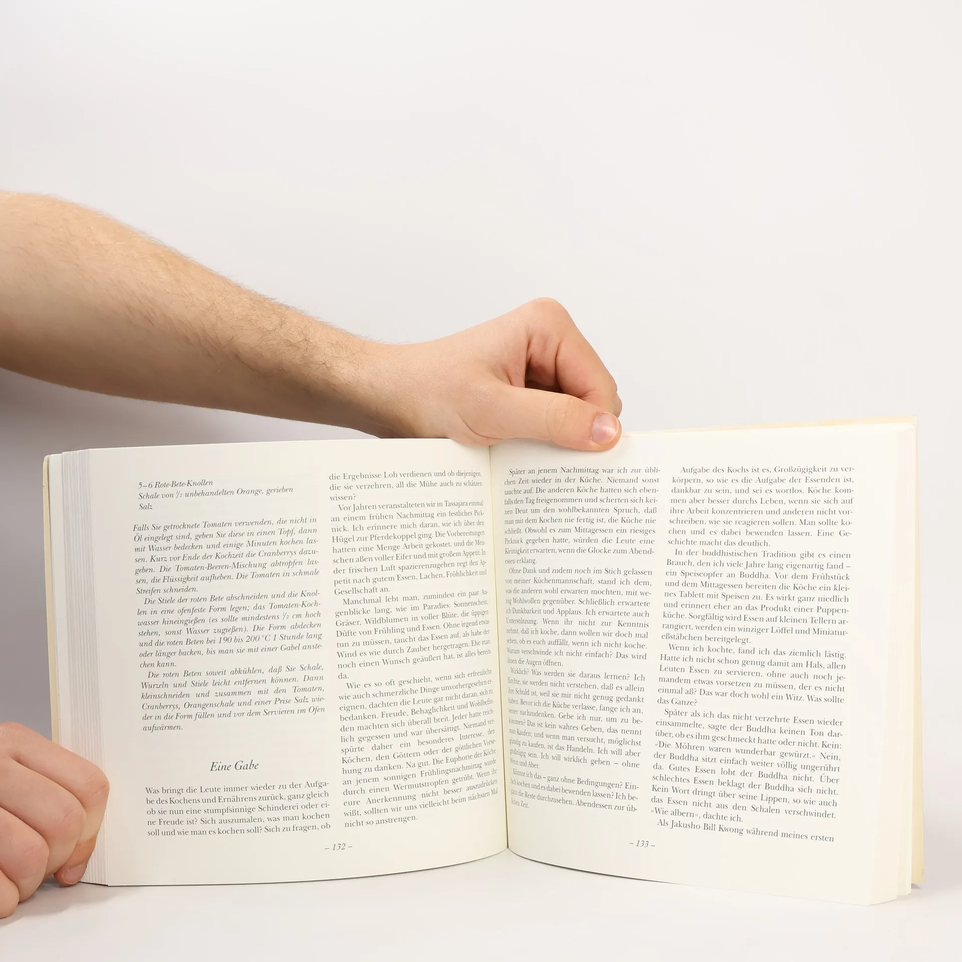 Zen bedeutet, in vollem Bewußtsein zu leben - gerade auch bei alltäglichen Tätigkeiten. Ed Brown versteht es, philosophische Gedanken über Zen-Meditation und praktische Ausführungen über das Kochen miteinander zu verweben, er lenkt den Blick auf die nur scheinbar simplen Genüsse. Für einen Zen-Koch liegt die ganze Welt in einer Wassermelone, in seinem Topf kochen Berge und Flüsse. Die vegetarischen Rezepte sind einfach und zugleich reich an Geschmack und Aromen, sie umfassen das Brotbacken ebenso wie Suppen, Salate, Gemüsegerichte, Gratins oder Kuchen. Eingestreut sind Reflexionen über die Kunst des Schneidens, über die Kraft der Konzentration, über Kreativität und Meditation. Essen ist eben mehr als bloße Nahrungsaufnahme und Kochen ein Fest der Sinne sowie ein Akt der Liebe und Großzügigkeit. Doris Dörrie hat Ed Brown getroffen und war Gast bei seinen Lectures. Mehr Infos zum Film finden Sie auf der Website www.how-to-cook-your-life.de »Dieses Buch macht nicht nur kulinarisch zufrieden, sondern auch ein bißchen weiser.« Eva Gesine Baur