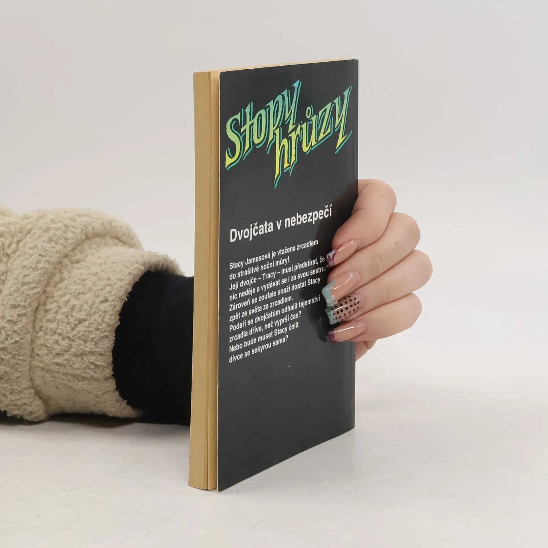Stacy Jamesová je vtažena zrcadlem do strašlivé noční můry! Její dvojče – Tracy – musí předstírat, že se nic neděje a vydávat se i za svou sestru. Zároveň se zoufale snaží dostat Stacy zpět ze světa za zrcadlem. Podaří se dvojčatům odhalit tajemství zrcadla dříve, než vyprší čas? Nebo bude muset Stacy čelit dívce se sekyrou sama?