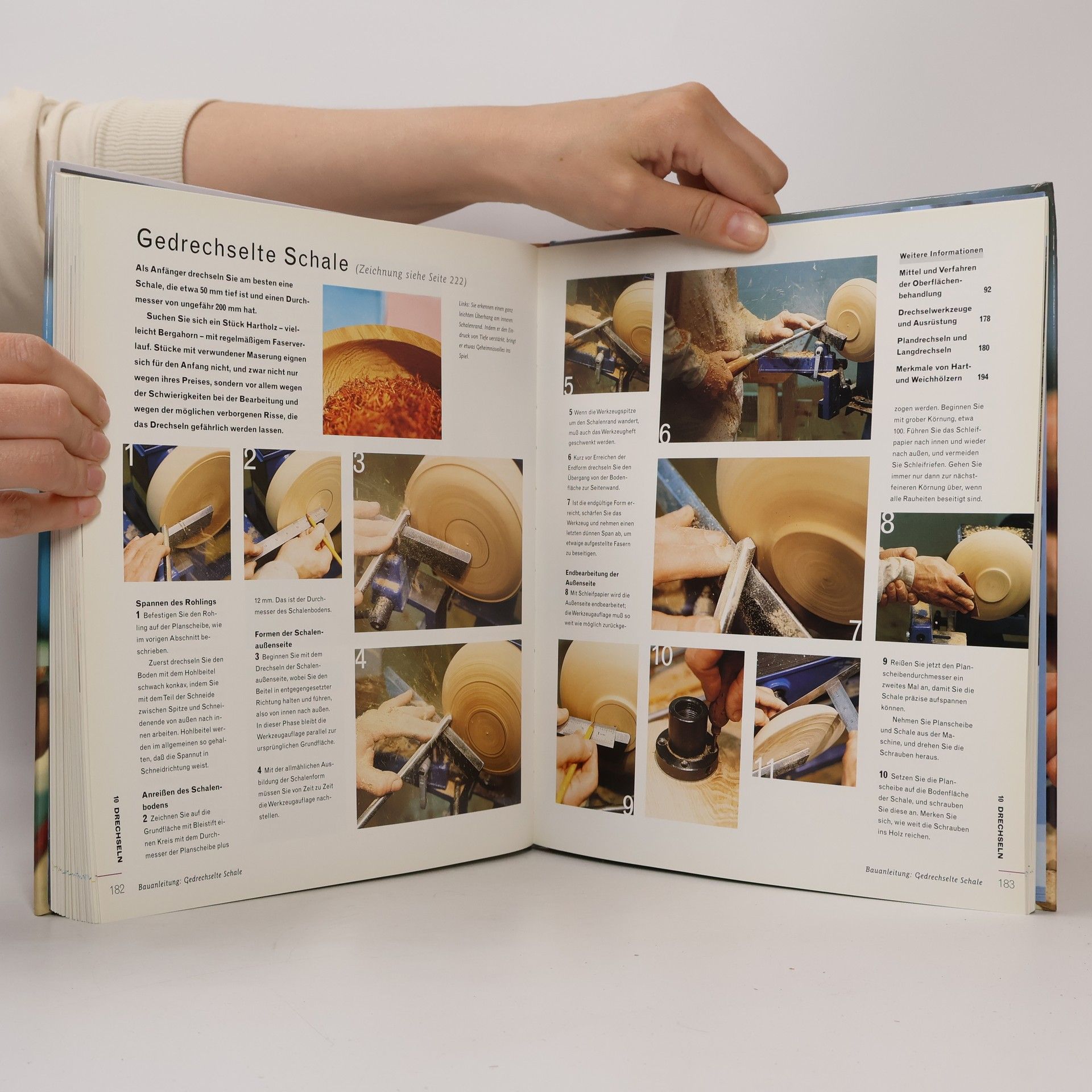 Alle wichtigen Techniken der Holzbearbeitung mit Schritt-für-Schritt-Anleitungen Das Buch ist eine sehr umfassende, sehr anschauliche und praktische Darstellung der grundlegenden Techniken der Holzbearbeitung. Der konsequent didaktishce Aufbau mit Schritt-für-Schritt-Anleitung in Wort und Bild nützt Einsteigern besonders. Das Themenspektrum reicht von den einzelnen Bearbeitungstechniken und Verbindungen bis hin zu selbst gebauten Objekten. Die Autoren geben Anregungen zum Entwerfen eigener Dinge und vermitteln Kenntnisse für den sicheren Umgang mit Hand- und Elektrowerkzeugen sowie Maschinen. Kapitel über die Hölzer der Welt, die Auswahl des richtigen Holzes für bestimmte Werkstücke, die Lagerung und Vorbereitung des Holzes runden das Leistungsspektrum dieses hervorragenden Buches ab.