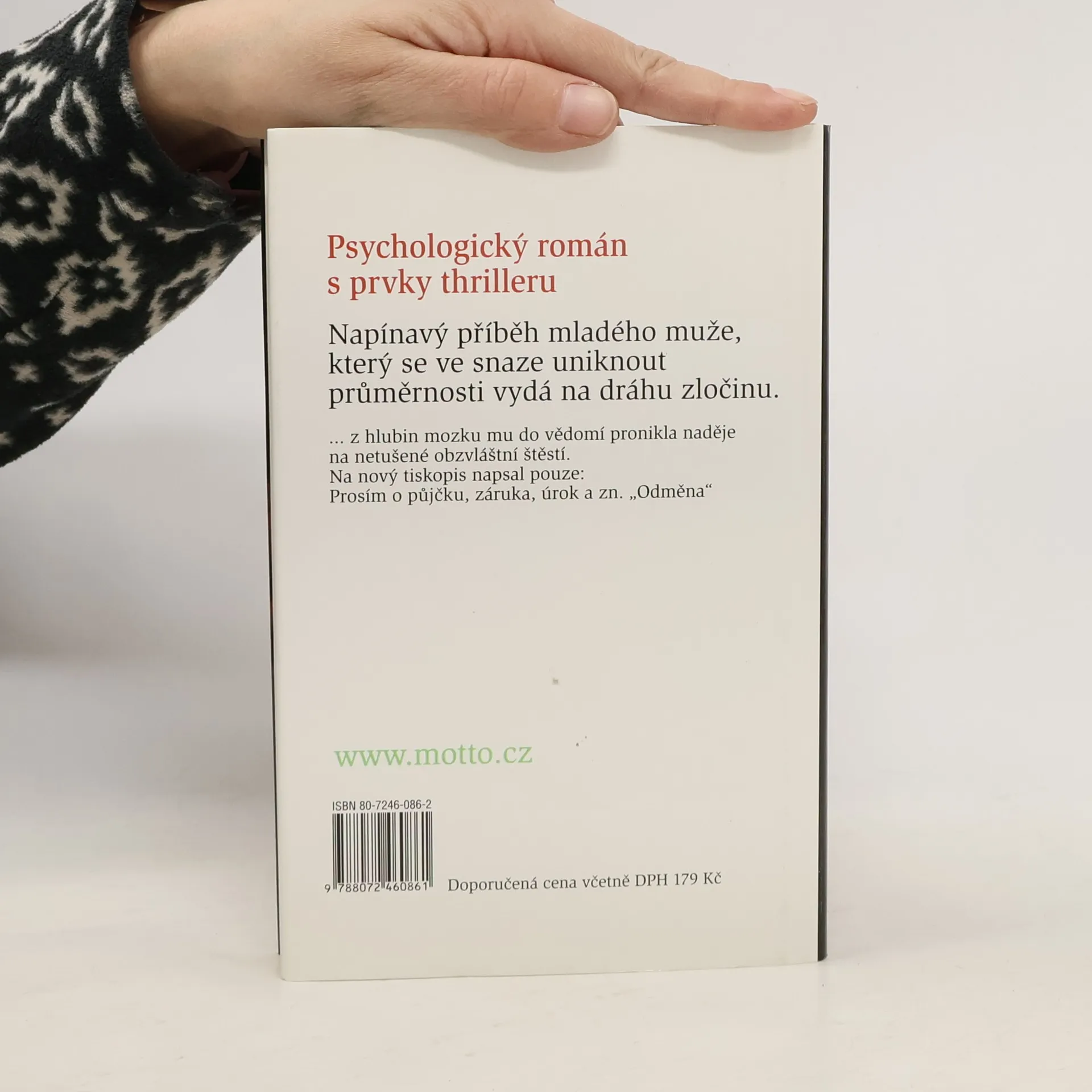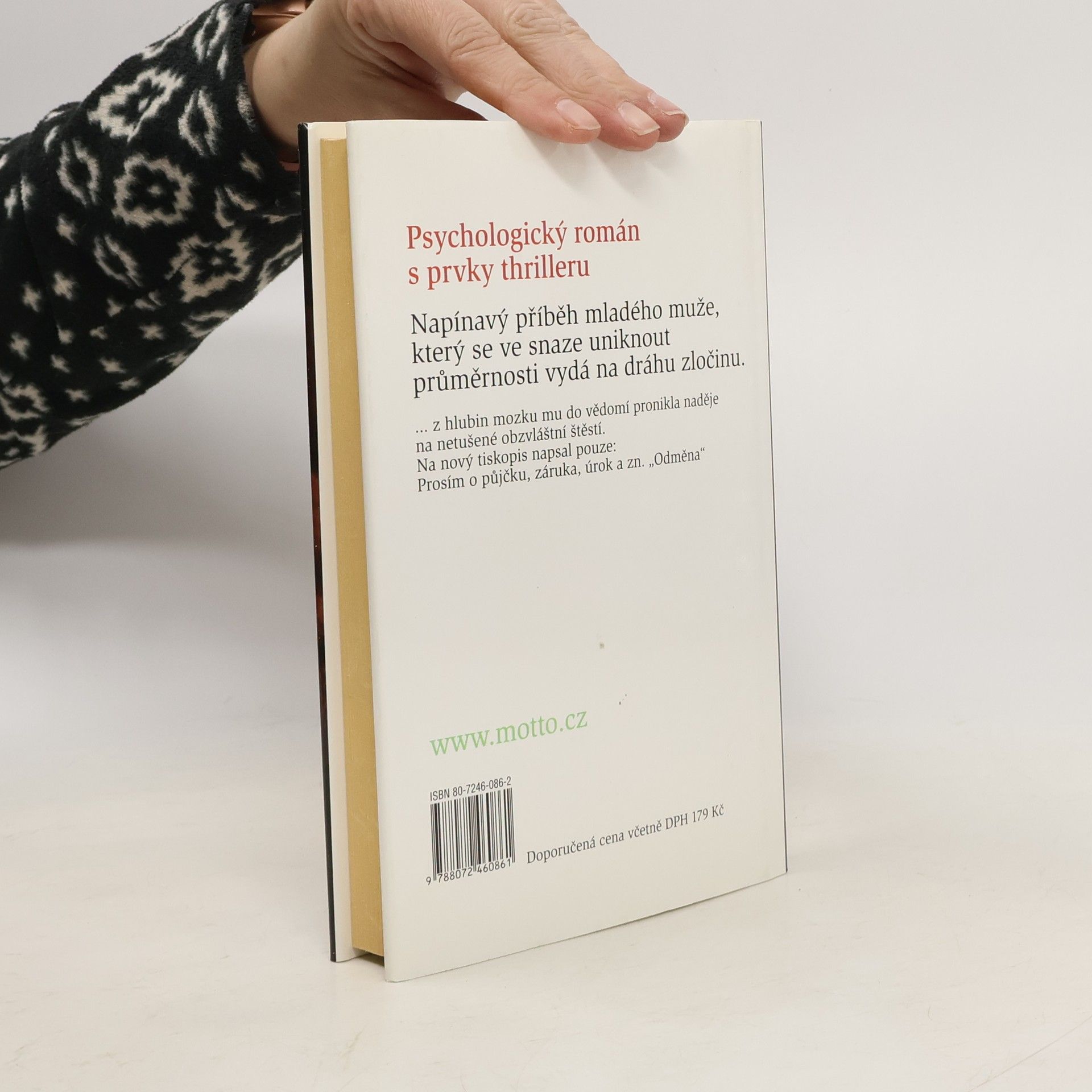 Napínavý příběh mladého muže, který se ve snaze uniknout průměrnosti vydá na dráhu zločinu.Autorce se podařilo do dramatického příběhu vsadit psychologickou studii člověka, jenž se zoufale snaží vymanit průměrnosti. Věří, že mu k úspěšnému životu dopomohou peníze… Není ale vůbec jednoduché je získat.