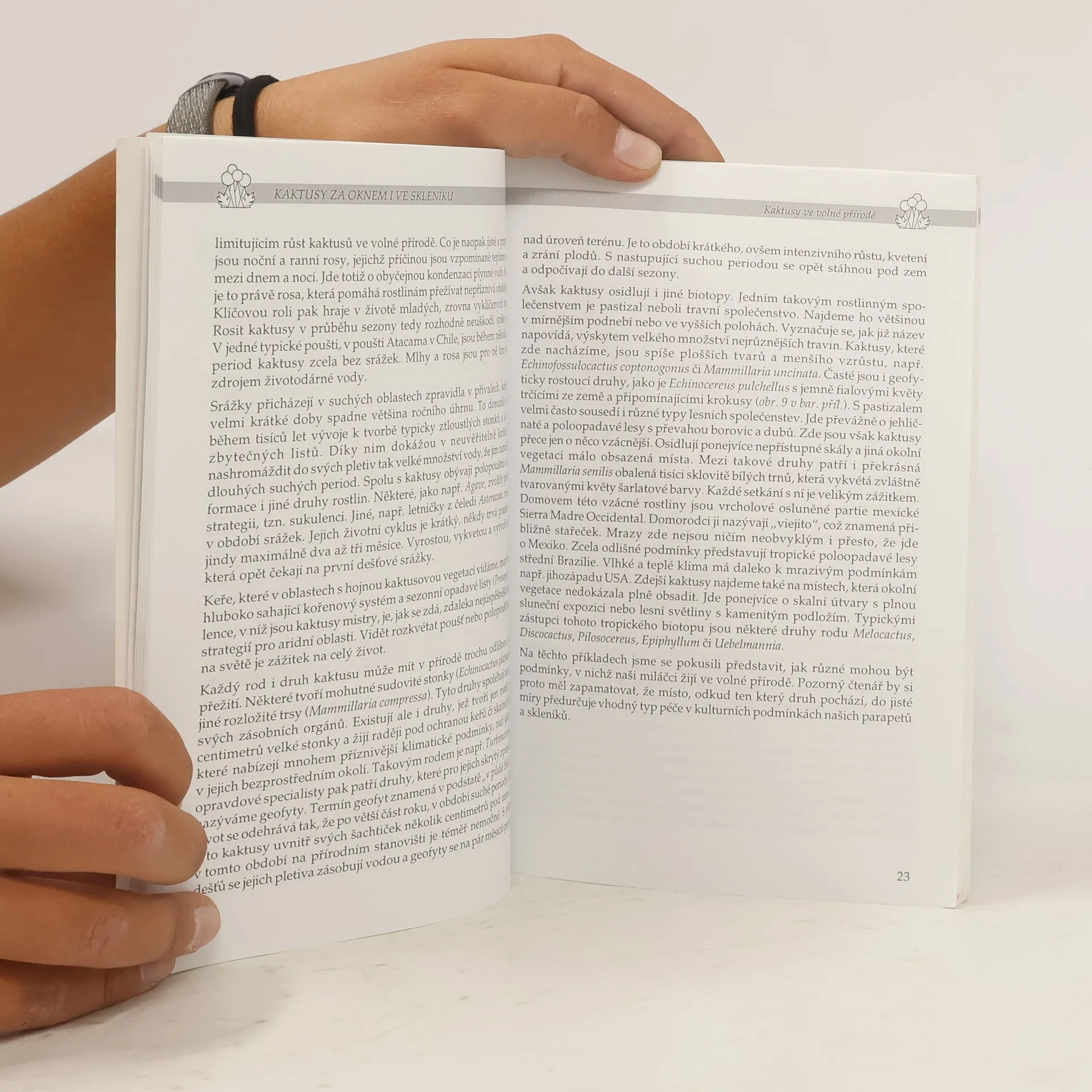 Autor knihy čerpá ze svých bohatých pěstitelských zkušeností a velice poutavě a zasvěceně popisuje ze všech možných úhlů základní práce kaktusáře. V první části knihy se zmiňuje o vzniku a vývoji kaktusů, o jejich morfologii, jak získávají své názvy a kde se s nimi lze setkat ve volné přírodě (sám za nimi cestuje po celém světě). Podrobně radí, jak se o kaktusy starat, jak je správně vysévat, přesazovat, hnojit, vegetativně rozmnožovat včetně roubování na správný typ podnože, součástí je i velice praktický kalendář prací kaktusáře. Druhá část knihy se zaměřuje na základní a nejčastěji pěstované skupiny kaktusů a je sestavena v návaznosti na obrazovou část knihy. Vždy je uvedeno, zda je příslušný kaktus vhodný pro začínajícího nebo pokročilého pěstitele. Zmíněny jsou také kaktusářské rarity.