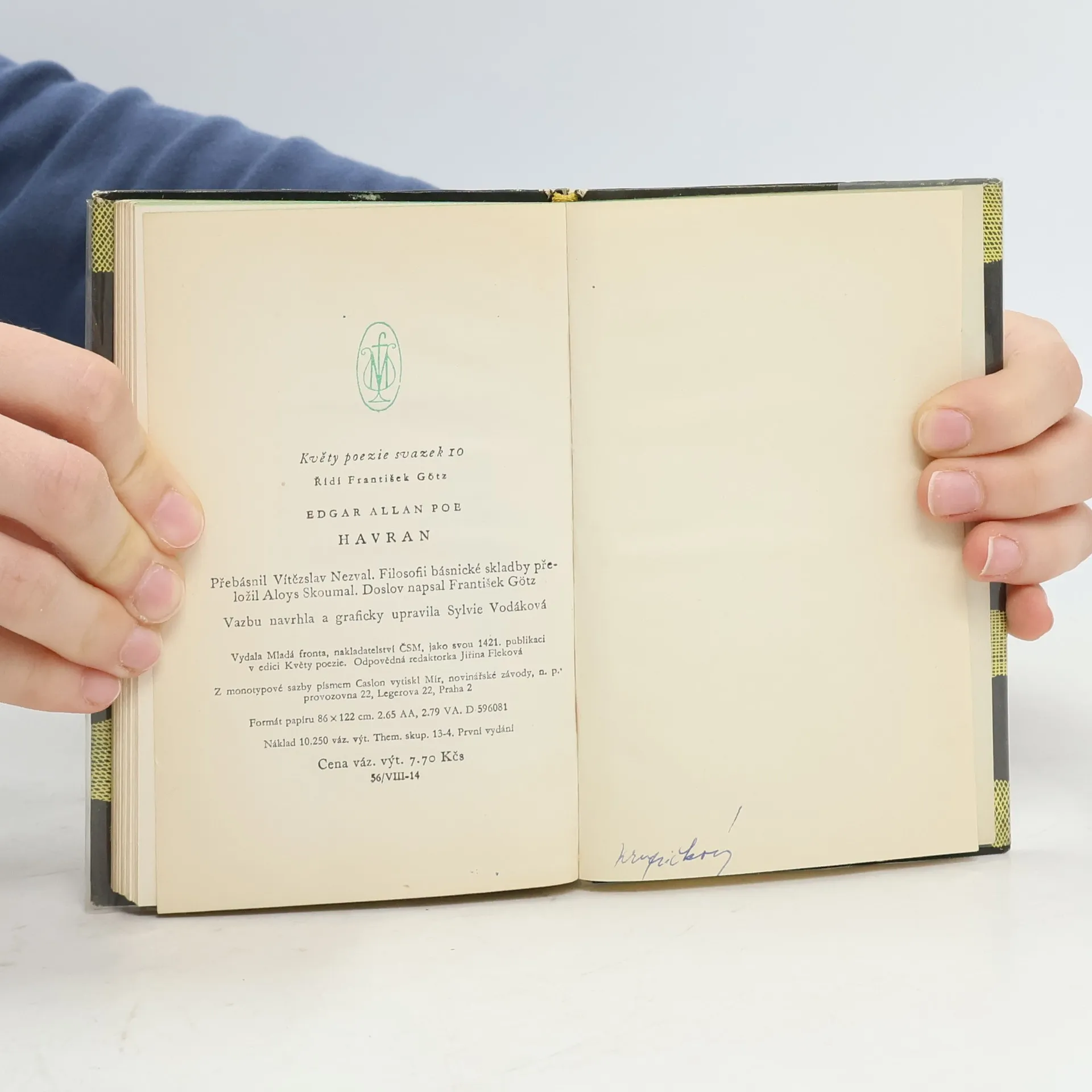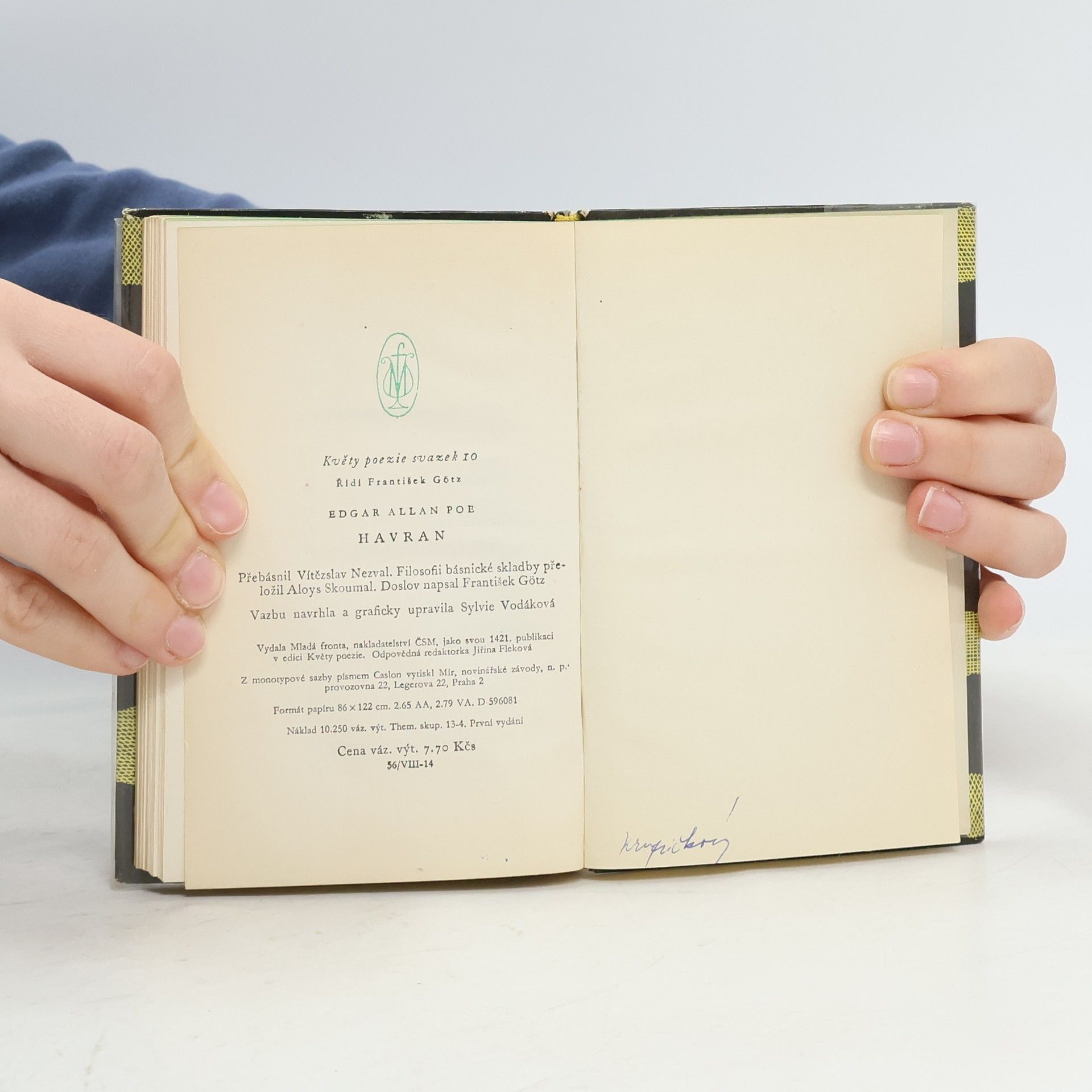 Šestnáct českých překladů. Kniha obsahuje úvodní studii A. Bejblíka, originál básně The Raven, Poeovu Filozofii básnické skladby, šestnáct českých překladů Havrana a přílohu s různými parafrázemi Havrana (J. Vrchlický, J. Váchal, V. Vančura, K. Biebl). České texty edičně zpracoval, komentáře a ediční poznámku pořídil a přílohu sestavil Rudolf Havel. Filozofii básnické skladby přeložil Aloys Skoumal. Částečně anglický text. Obsahuje překlady: Vratislav Kazimír Šembera (1869) Jaroslav Vrchlický (1881) Augustin Eugen Mužík (1885) Karel Dostál-Lutinov (1918) Vítězslav Nezval (1928) Otto František Babler (1930) Jiří Taufer (1938) Eugen Stoklas (1939) Dagmar Wagnerová (1945) Rudolf Havel (1946) Jan Blahoslav Čapek (1947) Kamill Resler (1948) Rudolf Černý (1952) Ivan Slavík (1953) Svatopluk Kadlec (1964) Alois Bejblík (1984)