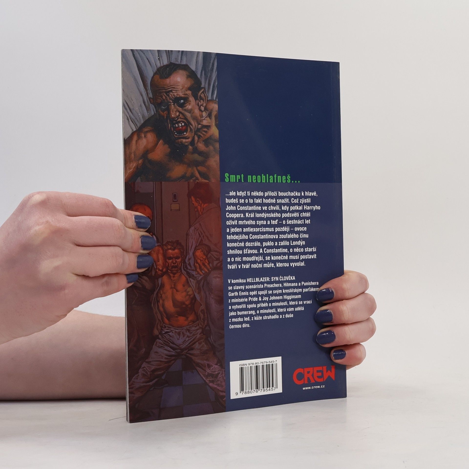 Smrt neoblafneš... ale když ti někdo přiloží bouchačku k hlavě, budeš se o to fakt hodně snažit. Což zjistil John Constantine ve chvíli, kdy potkal Harryho Coopera. Král londýnského podsvětí chtěl oživit mrtvého syna a teď – o šestnáct let a jeden antiexorcismus později – ovoce tehdejšího Constantinova zoufalého činu konečně dozrálo, puklo a zalilo Londýn shnilou šťávou. A Constantine, o něco starší a o nic moudřejší, se konečně musí postavit tváří v tvář noční můře, kterou vyvolal. V komiksu HELLBLAZER: SYN ČLOVĚKA se slavný scenárista Preachera, Hitmana a Punishera Garth Ennis opět spojil se svým kreslířským parťákem z minisérie Pride & Joy Johnem Higginsem a vytvořili spolu příběh o minulosti, která se vrací jako bumerang, o minulosti, která vám udělá z mozku led, z kůže struhadlo a z duše černou díru.