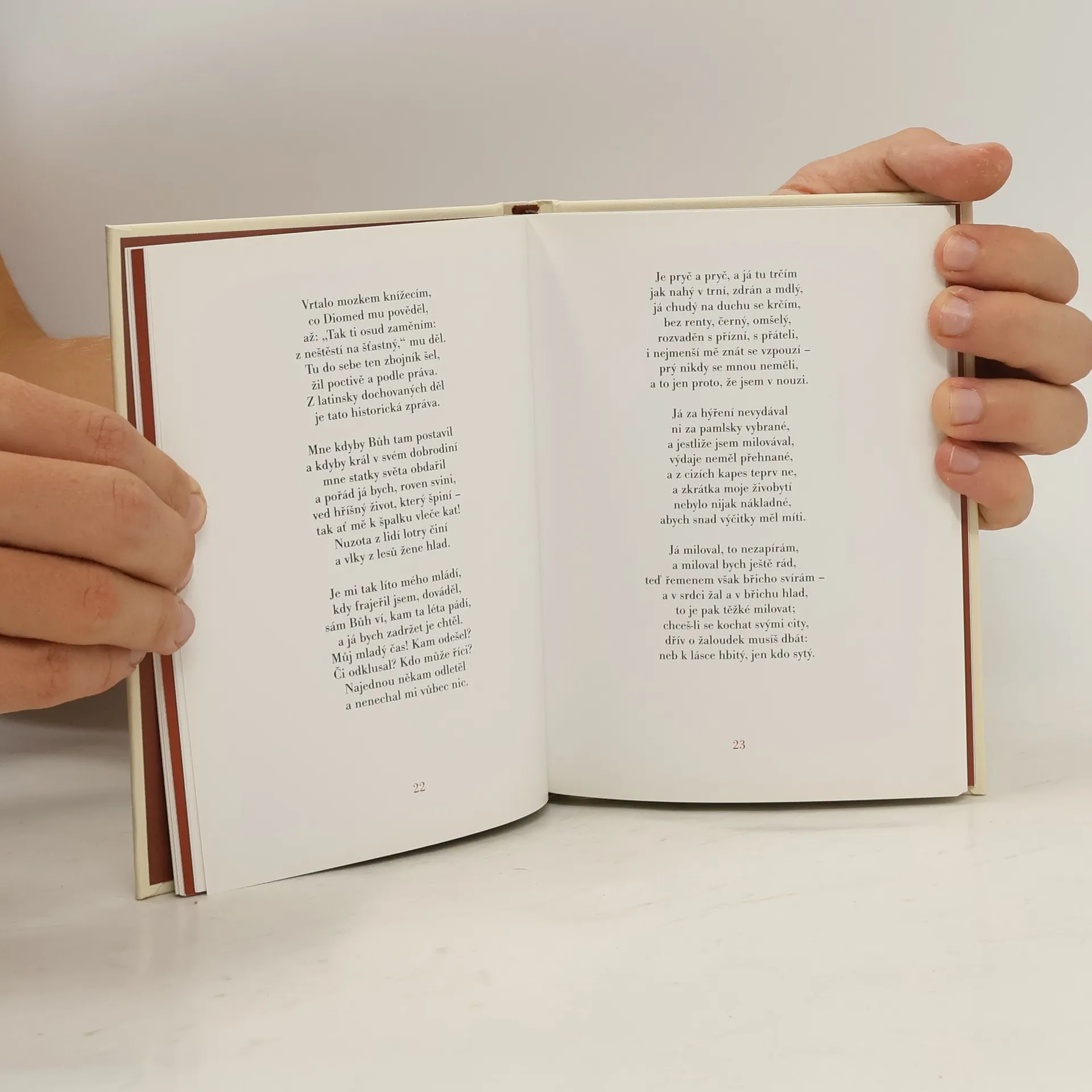 Publikace obsahuje baladické verše klasika francouzské středověké literatury. Základem této edice je Villonova nejvýznamnější sbírka "Závěť", která je zde publikována prakticky v úplném znění. Právě v ní se totiž definitivně potvrdil dnes již klasický literární termín "villonovská balada", dodnes udivující precizně zvládnutou formou a tvarem. Tento útvar je složen ze čtyř slok, z nichž první tři obsahují 7-12 veršů, zatímco závěrečná čtvrtá sloka v sobě skrývá už jen polovinu veršů ze slok předcházejících. Ve Villonových baladách ožívá na jedné straně prostředí krčem a bordelů, v nichž se básník velice často pohyboval. Na druhé straně z nich však můžeme poznat, a to zvláště v precizně zvládnutých lyrických reflexích, pocity ztroskotance a v pravém slova smyslu deklasovaného jedince, jenž od zuřivosti a cynismu zvolna přechází k melancholickým "výlevům", někdy ústícím až do kajícného doznání. Villon v sobě prostě nosil mimořádný dar pozorovat, sebezpytovat a v neposlední řadě i zachytit vlastní duševní stavy: je nepochybné, že právě tímto "autobiografickým" pojetím přispěl k tomu, aby jak jeho osobnost, tak i dílo překročily rámec své doby.