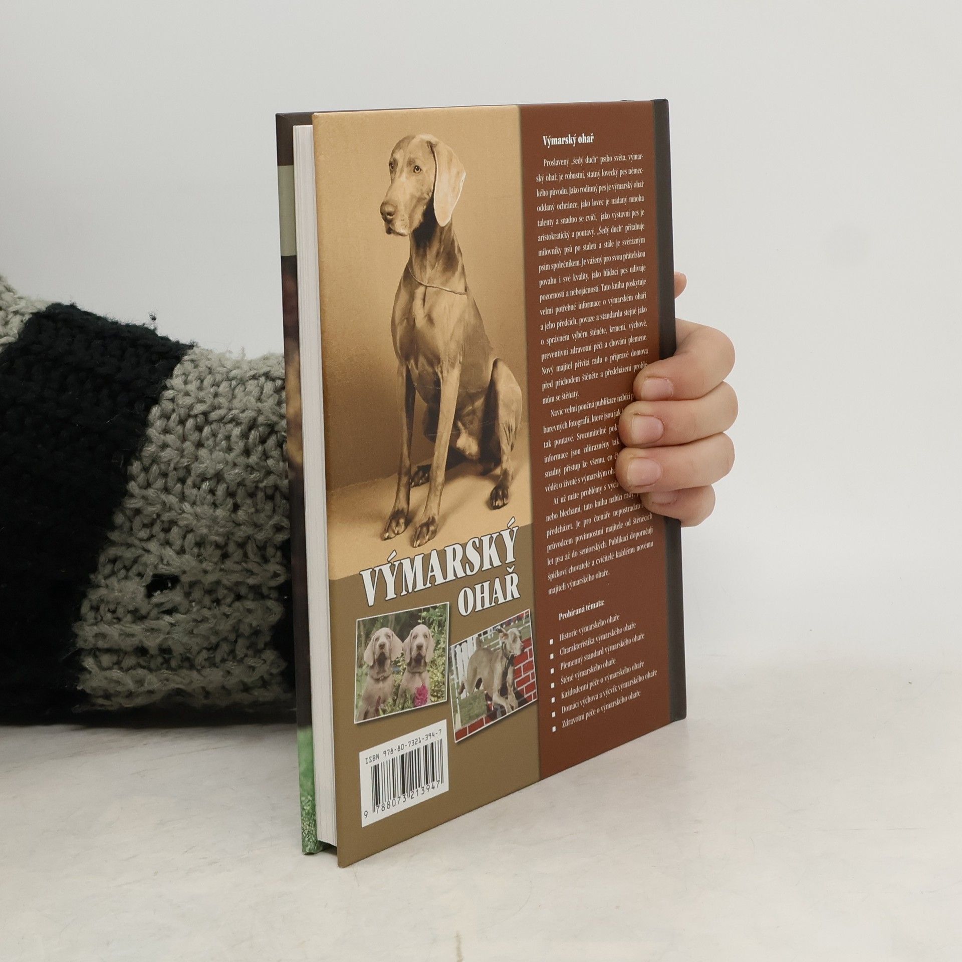 Špičková publikace obohacená množstvím barevných fotografií (více než 135) je doporučovaná předními odborníky každému majiteli výmarského ohaře, proslaveného "šedého ducha" psího světa, robustního, statného loveckého psa německého původu. Jako rodinný pes je výmarský ohař oddaný přítel a ochránce, jako lovec je nadaný mnoha talenty a snadno se cvičí, jako výstavní pes je aristokratický a poutavý.