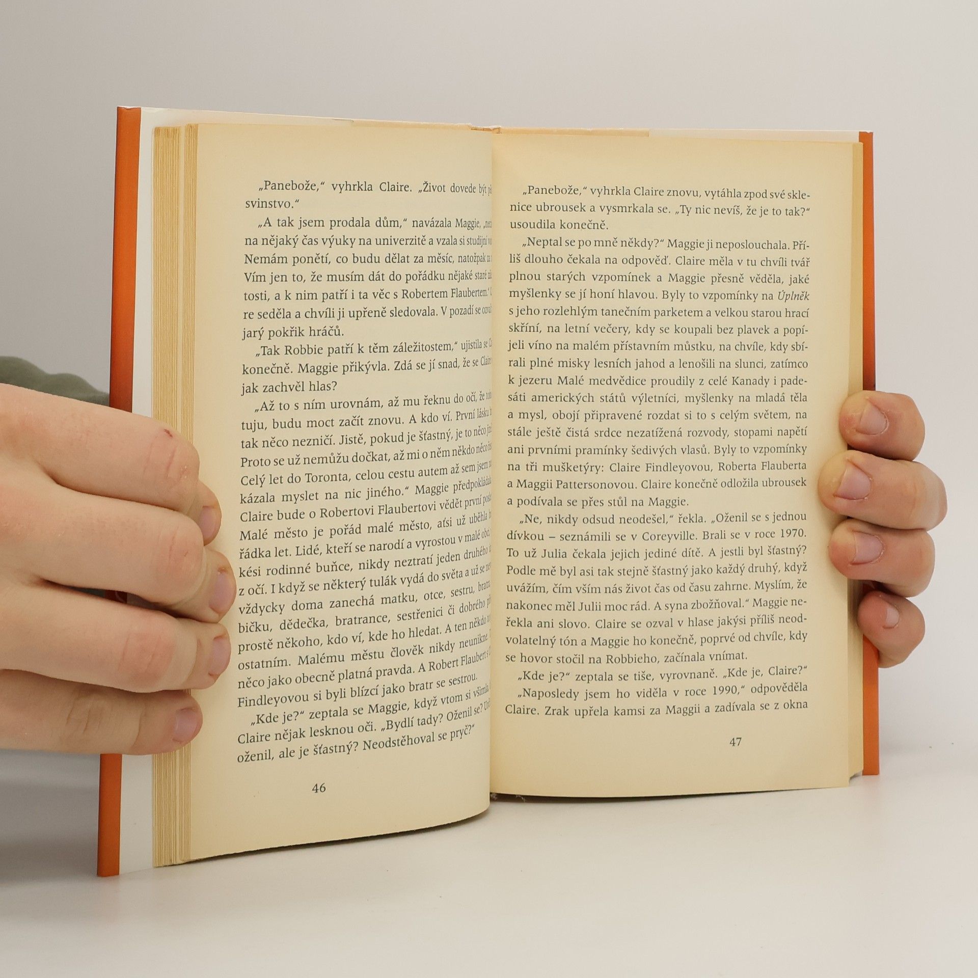 Maggie prožila poklidný život, v zaměstnání dosáhla uznání, vychovala dvě dcery. Teď je jí šestačtyřicet a všechno klidné a stabilní se najednou bortí jako domeček z karet. Dcery jsou dospělé a ona se instinktivně vrací do míst, kde kdysi prožívala šťastné okamžiky se svou první láskou. Najde její stopy a budou znamenat záchranu? Bude ještě možné navázat na dávné vzpomínky a odčinit křivdu, které se Maggie dopustila na romantickém mladíkovi jménem Robert Flaubert? Pořád se jí vrací jeho obraz, neskutečně prostoupený měsíčním světlem, jak se k ní otáčí u kanadského jezera, kam jako studentka jezdívala na brigádu do restaurace Podzimní úplněk. Sny se jí nakonec vyplní úplně jinak, než by kdy tušila.....