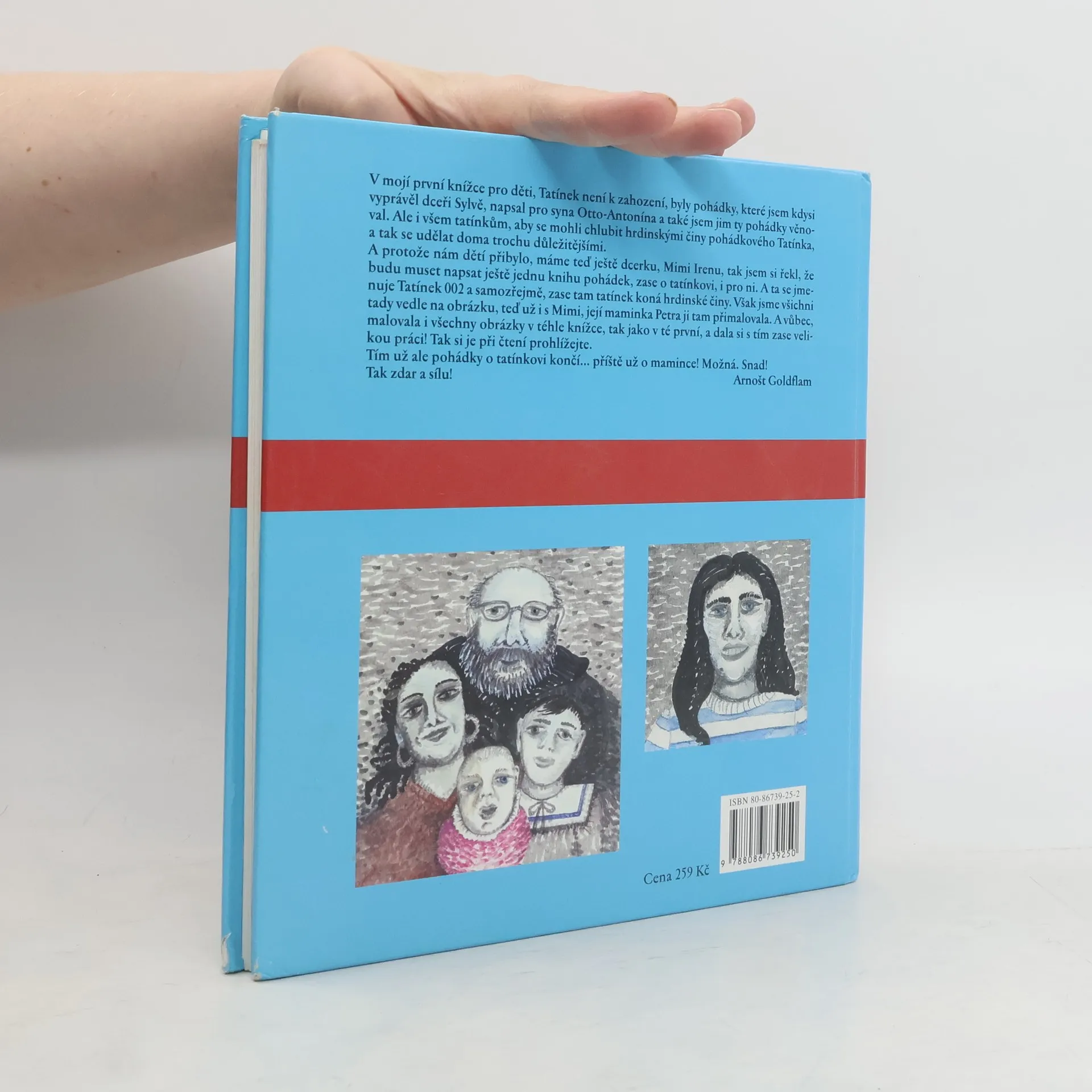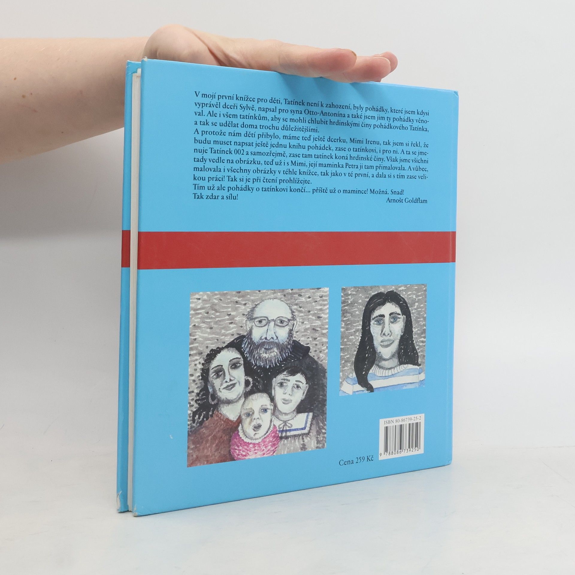 V první knížce pro děti, Tatínek není k zahození, byly pohádky, které Arnošt Goldflam kdysi vyprávěl dceři Sylvě, napsal pro syna Otto-Antonína a také jim ty pohádky věnoval. Ale i všem tatínkům, aby se mohli chlubit hrdinskými činy pohádkového Tatínka, a tak se udělat doma trochu důležitějšími. A protože mu dětí přibylo, tak si řekl, že bude muset napsat ještě jednu knihu pohádek, zase o tatínkovi, i pro ni. A ta se jmenuje Tatínek 002 a samozřejmě, zase tam tatínek koná hrdinské činy. Však jsou všichni na obrázku, teď už i s Mimi, její maminka Petra ji tam přimalovala. A vůbec, malovala i všechny obrázky v téhle knížce, tak jako v té první, a dala si s tím zase velikou práci! Tak si je při čtení prohlížejte.... celý text