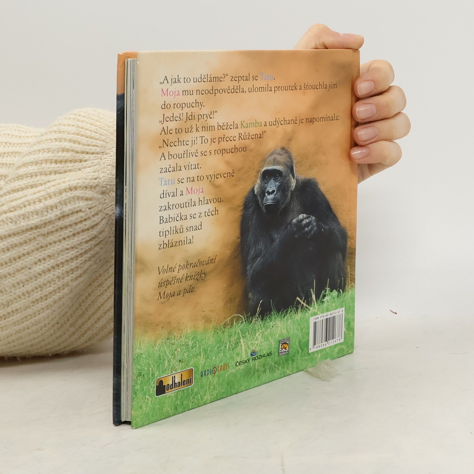 Napínavé i humorné příběhy slavné gorilky Moji a jejího mladšího brášky Tatua. Texty autora projektu Odhalení Miroslava Bobka a scénáristky Terezy Šefrnové volně navazují na jejich předchozí úspěšnou knížku Moja a páv. Doplněno mnoha celostránkovými fotografiemi a obsáhlým doslovem pro zvídavé děti i dospělé.