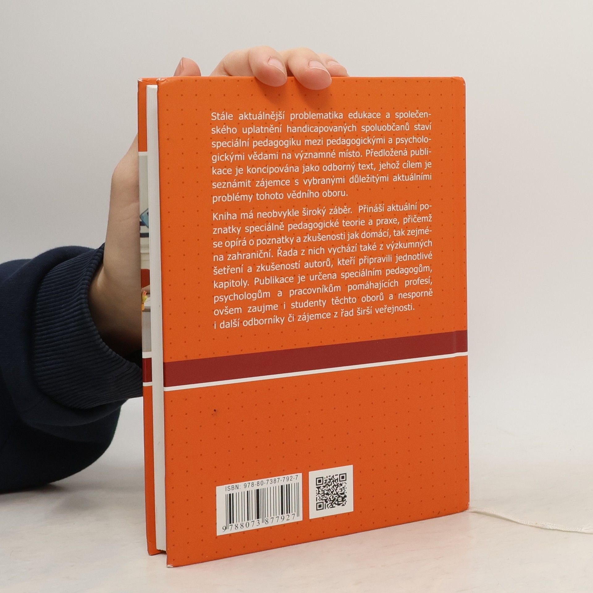 Speciální pedagogika (Edukace a rozvoj osob se specifickými potřebami v oblasti somatické, psychické a sociální) 2. vydání Stále aktuálnější problematika edukace a společenského uplatnění handicapovaných spoluobčanů staví speciální pedagogiku mezi pedagogickými a psychologickými vědami na významné místo. Předložená publikace je koncipována jako odborný text, jehož cílem je seznámit zájemce s vybranými důležitými aktuálními problémy tohoto vědního oboru. Předložená publikace navazuje na původní text knihy Speciální pedagogika: Edukace a rozvoj osob se somatickým, psychickým a sociálním znevýhodněním z roku 2008...