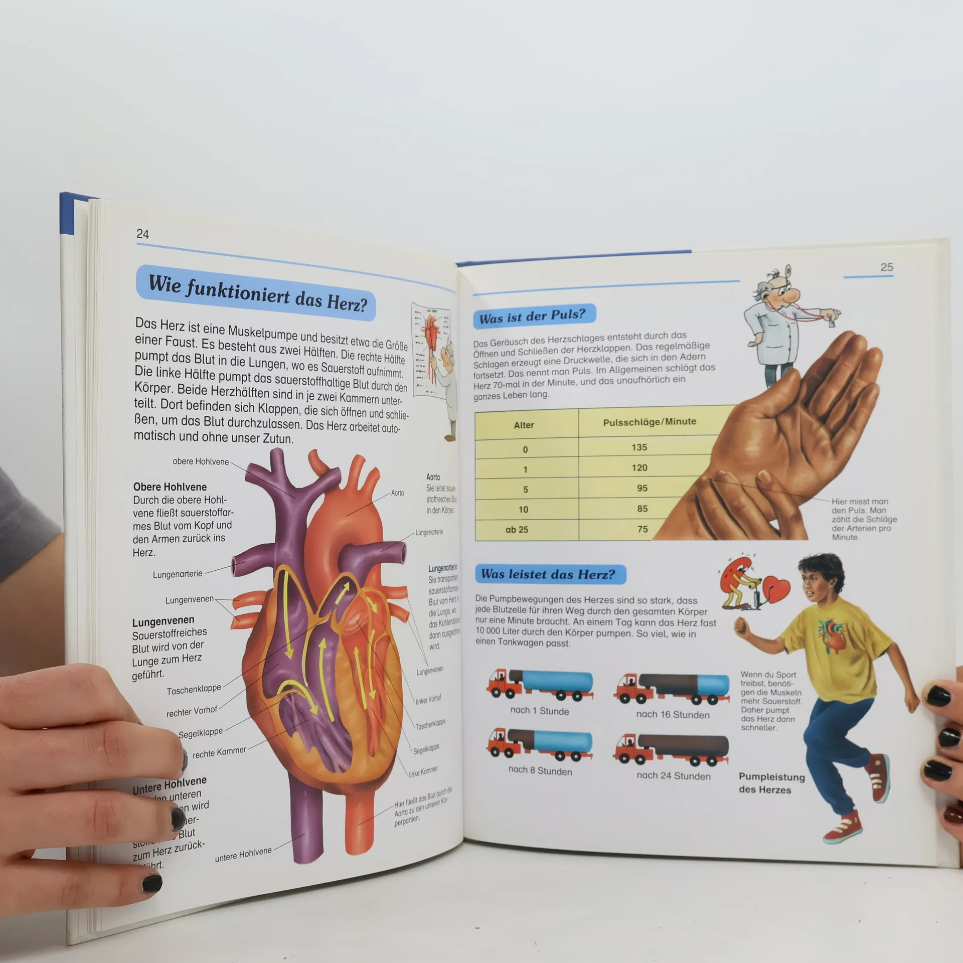 Wie eigentlich funktioniert unser Körper?: Das Büchlein gibt eine Einführung ins Grundwissen über unseren Körper. Es werden verschiedene Aspekte angesprochen: biologischer Aufbau, Skelett und Gelenke, Muskeln, Nerven, Blut und Herz, Haut, Sinnesorgane, Lunge, Verdauung und Ausscheidung, Fortpflanzung etc. Die kurzen Texte sind klar formuliert und gut verständlich. Sie werden unterstützt von fotorealistischen Bildern mit Legenden und Stichwörtern. Das Material regt zu weiteren Fragen und Interessen an. Es bietet gute Ansatzpunkte für die Diskussion von Fragen wie Körperpflege, Gesundheitsvorsorge oder sexuelle Aufklärung. Ab 8 Jahren, ausgezeichnet, Ruedi W. Schweizer.