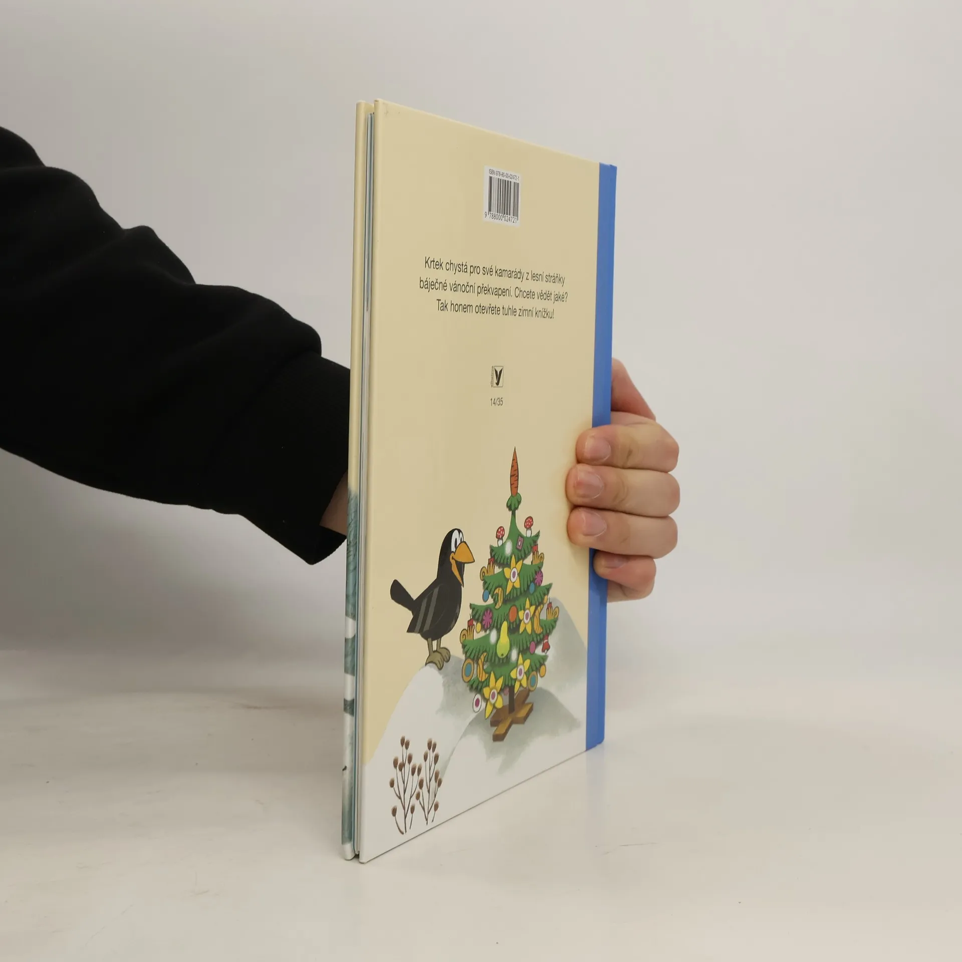 Byla zima, zvířátka ještě tvrdě spala ve svých pelíšcích. Ale Krtek ne, ten už běhal venku. Chtěl přichystat pro své kamarády z lesní stráňky báječné vánoční překvapení. A ukázalo se, že to nebude tak jednoduché, jak se zpočátku zdálo. Z dálky ho totiž pozorovala škodolibá tetka vrána. Jakmile spatřila krásný vánoční stromeček ozdobený dobrotami, hned na něj dostala zálusk. Krtek si však se známou zlodějkou snadno poradil. Chcete vědět jak? Tak honem otevřete tuhle zimní knížku! 1. vydání.