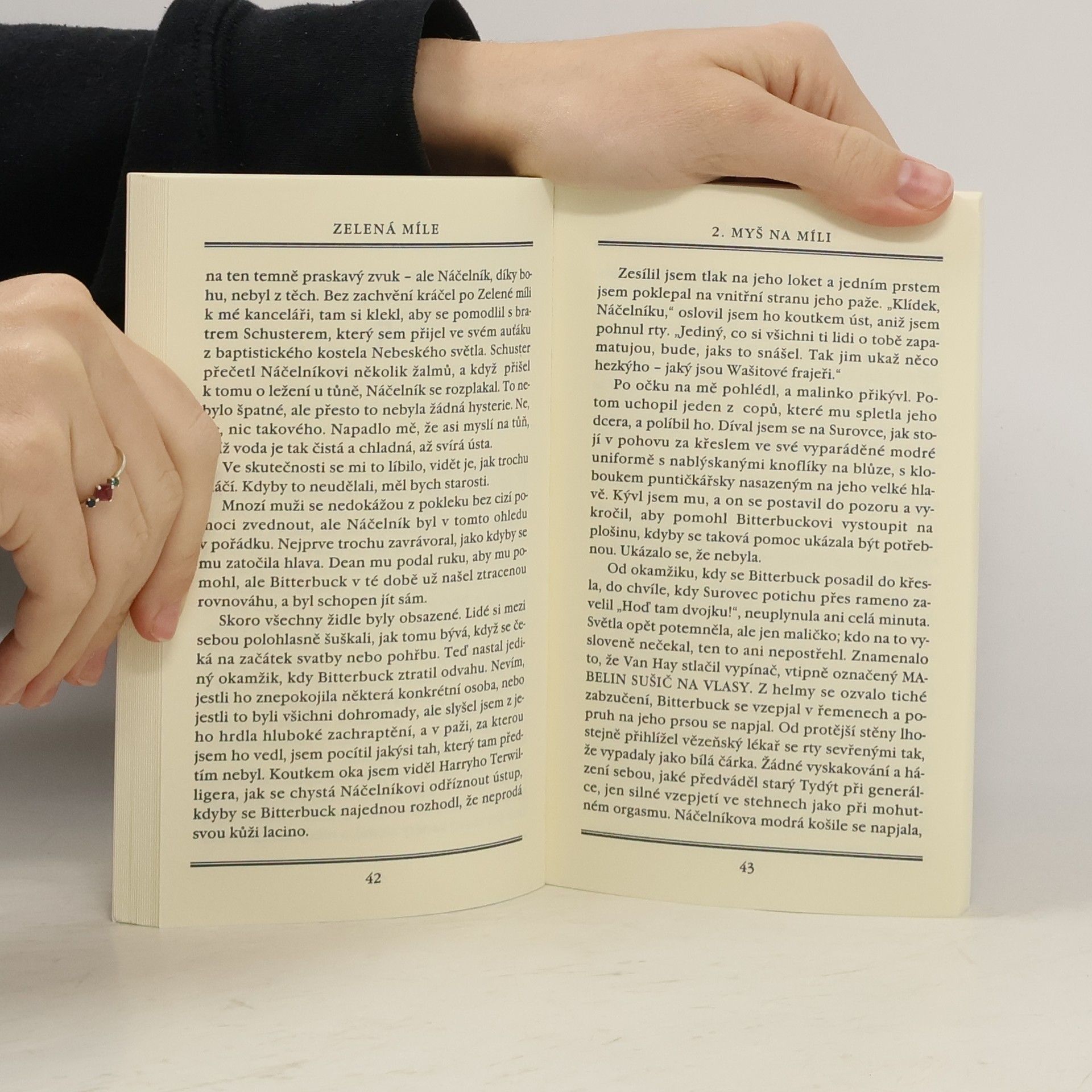 Káznice v Cold Mountain byla již domovem mnoha odsouzencům. Ti nejhorší jsou v bloku E, kde čeká alektrické křeslo na ty, kteří musí zaplatit cenu nejvyšší. Ne všichni zloduši jsou však za mřížemi. Někteří mají zbraň a nosí uniformu. Cold Mountain je místo pro zatracence, může se však stát i místem záchrany, která neočekávaně přijde z toho nejméně pravděpodobného zdroje. Nic z toho, co jste dosud přečetli, vás nemohlo dostatečně připravit na četbu nejzdařilejšího hororového díla Stephena Kinga. Několikadílný seriál začíná v Death Row a provede nás úžasnými a ohromujícími záhadami lidského srdce. Je to jen myška, můžete říci. Ale v rukách Stephena Kinga nic není tím, čím se zprvu zdá a jak to vypadá.