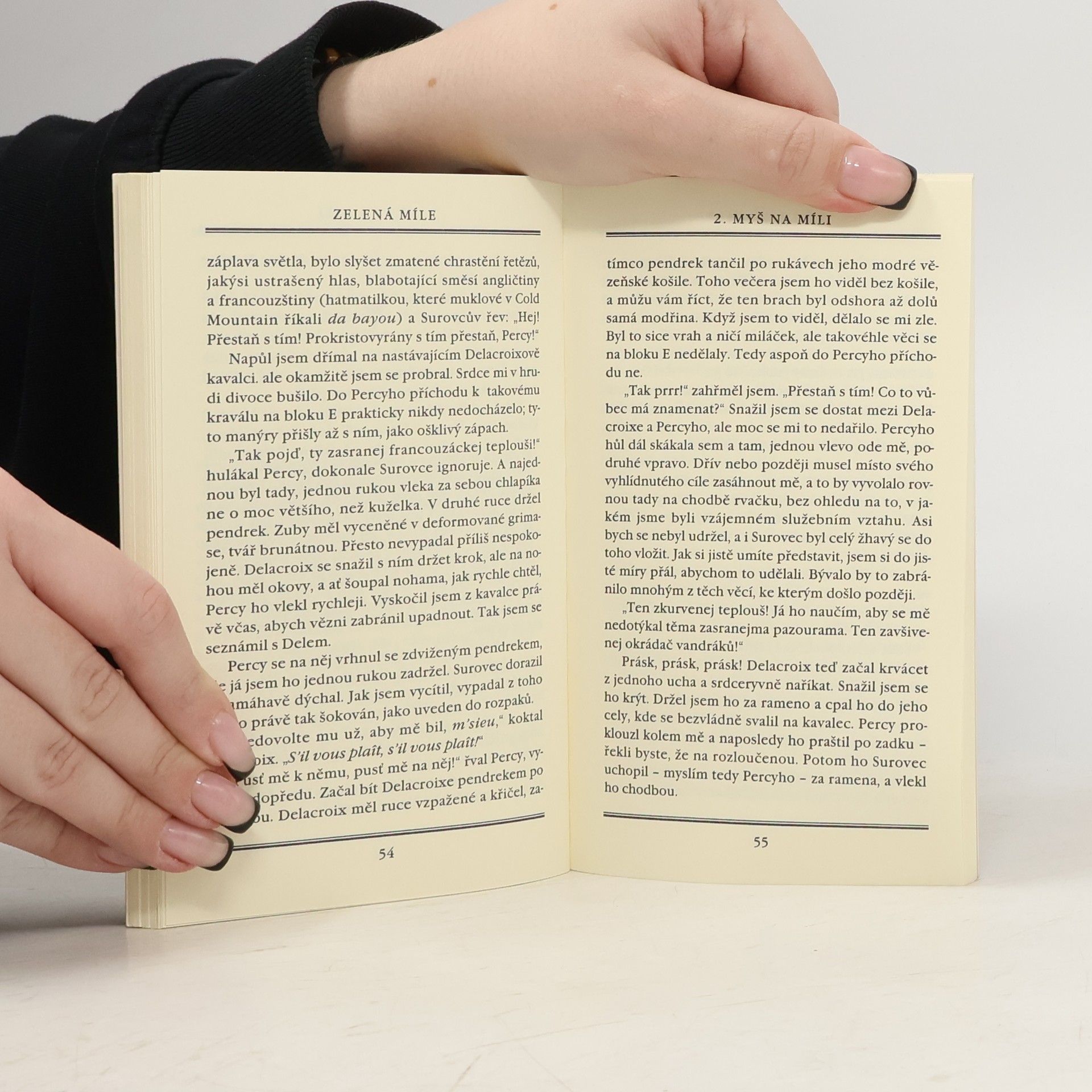 Káznice v Cold Mountain byla již domovem mnoha odsouzencům. Ti nejhorší jsou v bloku E, kde čeká alektrické křeslo na ty, kteří musí zaplatit cenu nejvyšší. Ne všichni zloduši jsou však za mřížemi. Někteří mají zbraň a nosí uniformu. Cold Mountain je místo pro zatracence, může se však stát i místem záchrany, která neočekávaně přijde z toho nejméně pravděpodobného zdroje. Nic z toho, co jste dosud přečetli, vás nemohlo dostatečně připravit na četbu nejzdařilejšího hororového díla Stephena Kinga. Několikadílný seriál začíná v Death Row a provede nás úžasnými a ohromujícími záhadami lidského srdce. Je to jen myška, můžete říci. Ale v rukách Stephena Kinga nic není tím, čím se zprvu zdá a jak to vypadá.