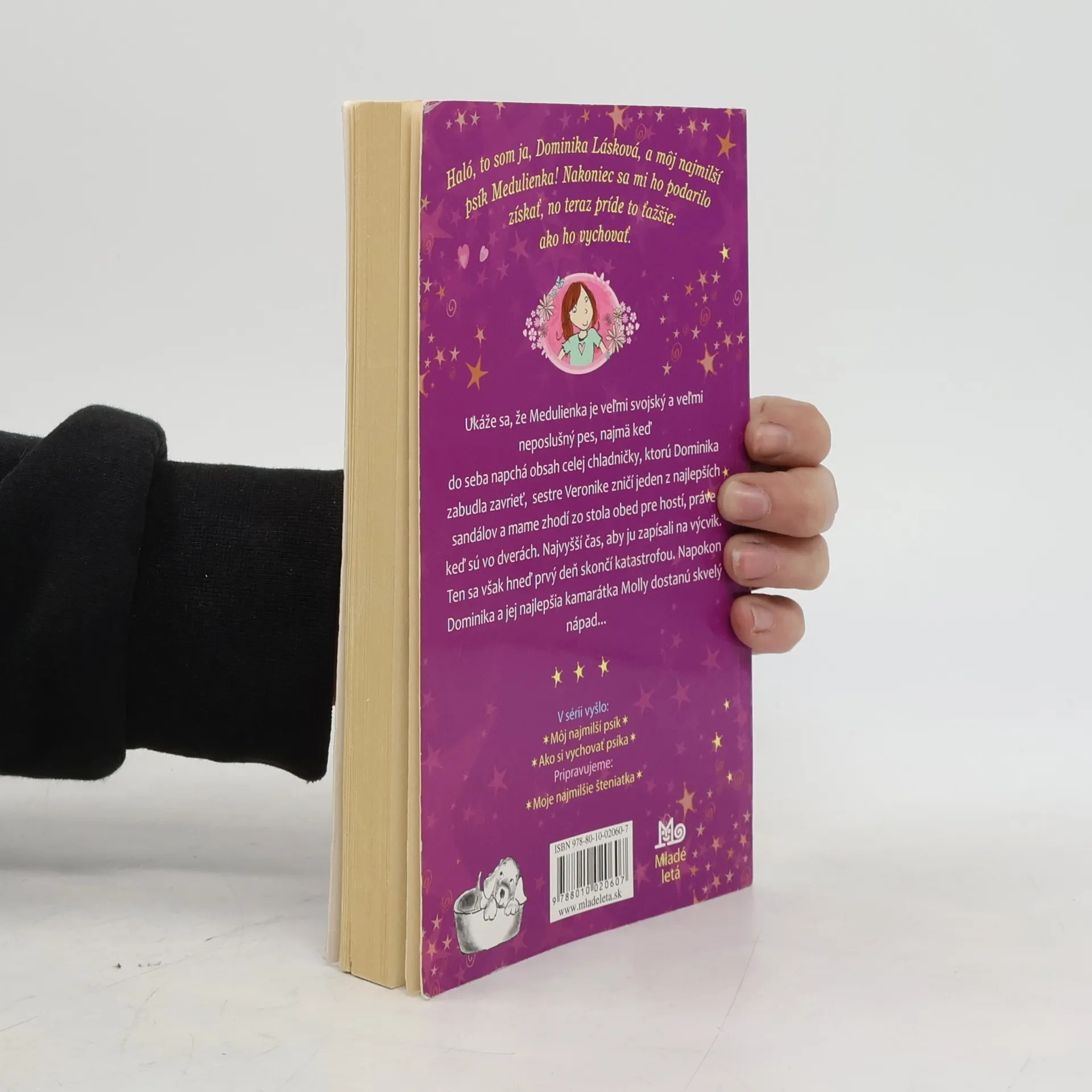 Pokračovanie úsmevného rozprávania Dominiky o jej šteniatku Medulienke, ktoré si tak ťažko vybojovala. A teraz stojí pred ňou nová, podľa všetkého asi rovnako ťažká úloha: ako zvládnuť vychovať neposlušnú Medulienku, ktorá najradšej zo všetkého obhrýza domácim aj návštevám topánky, napchá do seba obsah celej chladničky alebo zhodí zo stola obed pre hostí, práve keď sú vo dverách. Ukáže sa, že Medulienka je veľmi svojský a nezbedný pes, preto je najvyšší čas, aby ju zapísali na výcvik. Okrem pôvabných a vtipných príbehov čitatelia v knihe nájdu aj užitočné rady na výchovu psíka.