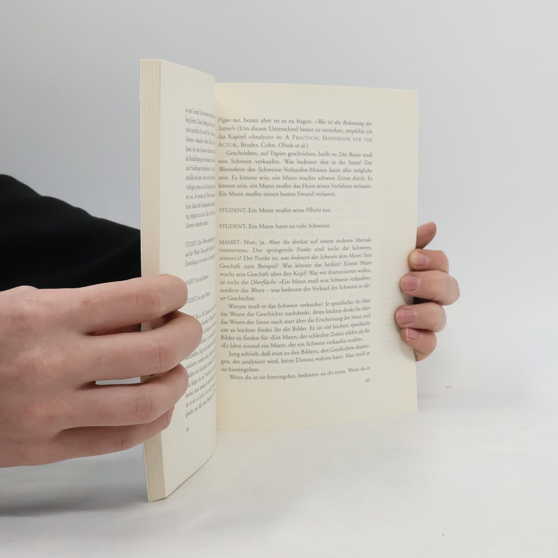 In den USA sind David Mamets Vorlesungen über Filmregie, die er im Herbst 1987 an der Filmschule der Columbia University hielt, eines der Standardwerke zur Regie- und Drehbuchtechnik. 'Ein guter Autor wird nur dann besser, wenn er lernt zu streichen, das Schmückende, das Beschreibende, das Narrative und vor allem das tief Gefühlte und Bedeutungsvolle herauszunehmen. Das Drehbuchschreiben ist eine Kunst, die auf Logik beruht. Sie besteht aus der beharrlichen Anwendung einer Reihe von grundlegenden Fragen: Was will der Held? Was hindert ihn daran, es zu bekommen? [.] Ich kam als Drehbuchautor zum Regieführen und betrachtete die Kunst der Regie als freudeschaffende Fortsetzung des Drehbuchschreibens – und unter dieser Prämisse unterrichtete ich den Kurs und schrieb ich dieses Buch.' David Mamet