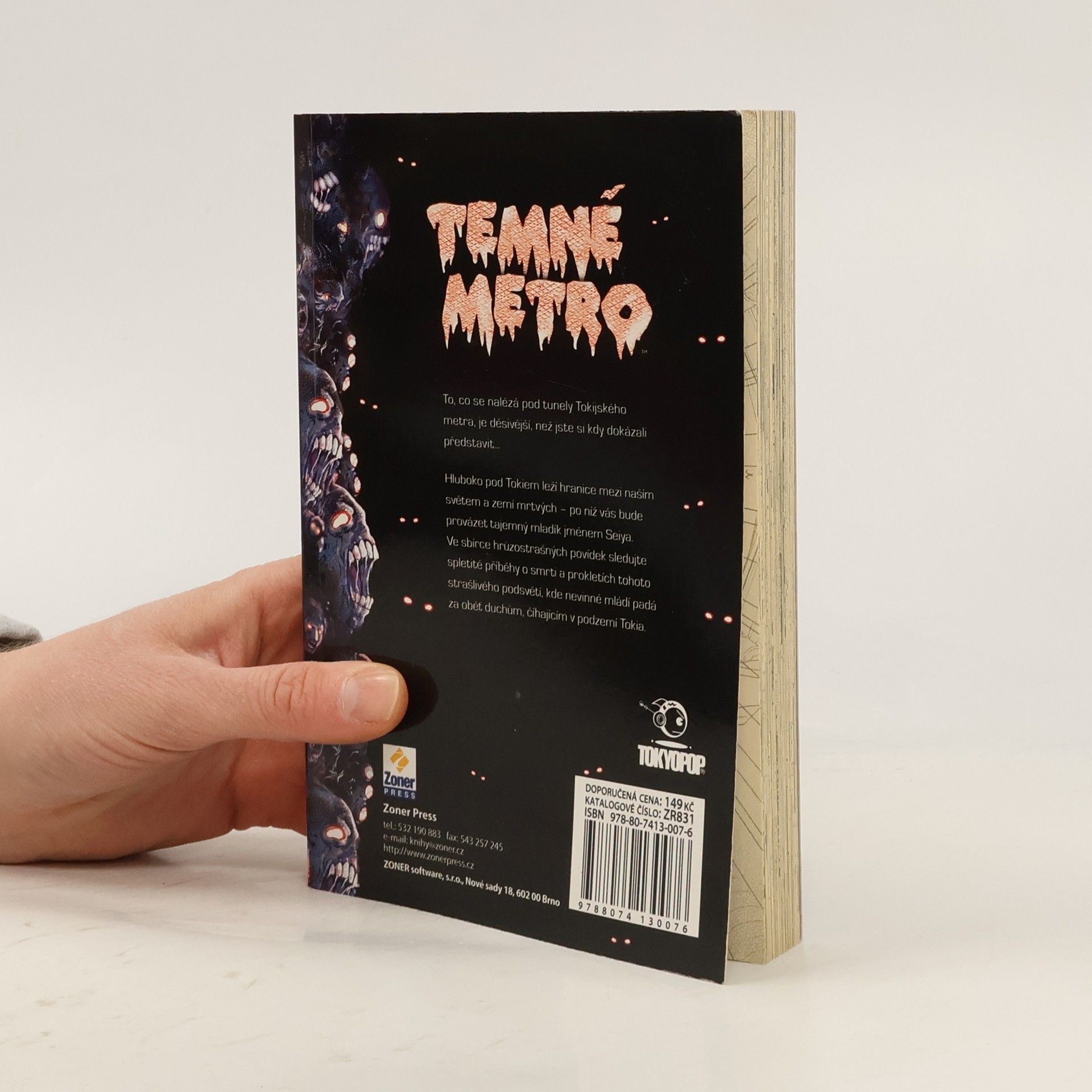 To, co se nachází pod systémem tokijského metra, je děsivější, než jste si kdy dokázali představit... Hluboko pod Tokiem leží hranice mezi naším světem a zemí mrtvých - po níž vás bude provázet tajemný mladík jménem Seiya. V této sbírce hrůzostrašných povídek sledujte spletité příběhy o smrti a prokletích tohoto strašlivého podsvětí, kde nevinné mládí padá za oběť duchům, číhajícím v podzemí Tokia. Tato kniha je vytištěna ve stylu „manga“, v autentickém japonském formátu zprava doleva. A protože žádná z kreseb nebyla převrácena nebo nahrazena, čtenáři si příběh vychutnají přesně tak, jak jeho tvůrci zamýšleli.