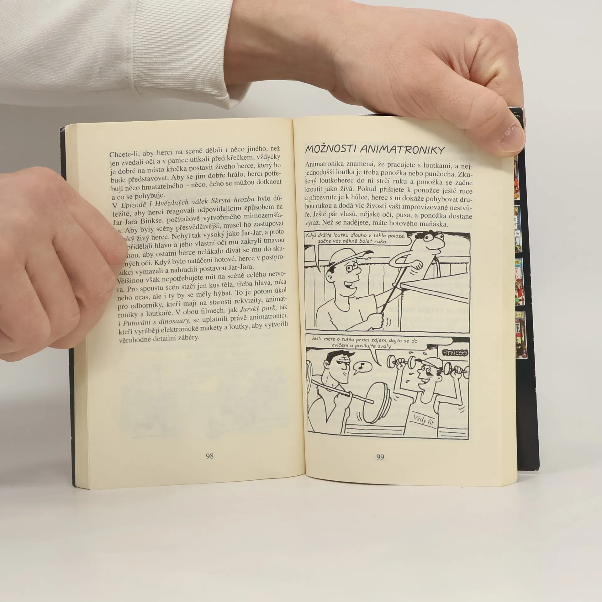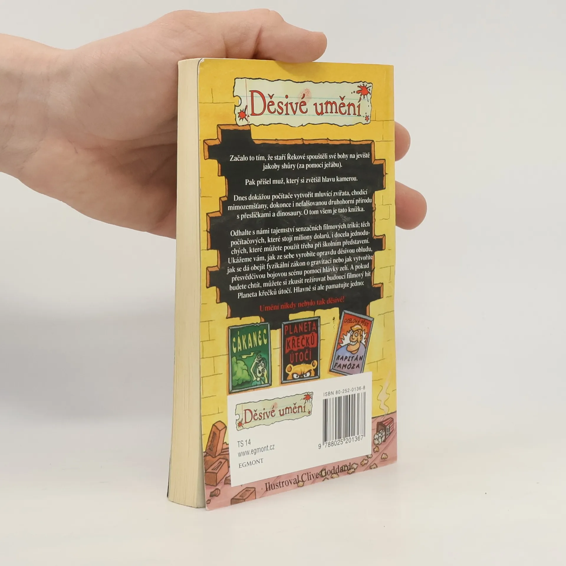 O čem se vám učitelé neodvažují říct. Tentokrát nám "děsivé umění" odhalí senzační tajemství filmových triků. Pro starší děti. Začalo to tím, že staří Řekové spouštěli své bohy na jeviště za pomoci jeřábu. Dnes dokážeme s pomocí počítače vytvořit chodící mimozemšťany, pravěké ještěry i útočící monstra. Kniha nám humornou formou, se spoustou zábavných obrázků, odhalí zákulisí počítačových triků a seznámí nás i s těmi docela jednoduchými, které použijeme třeba při školním představení.