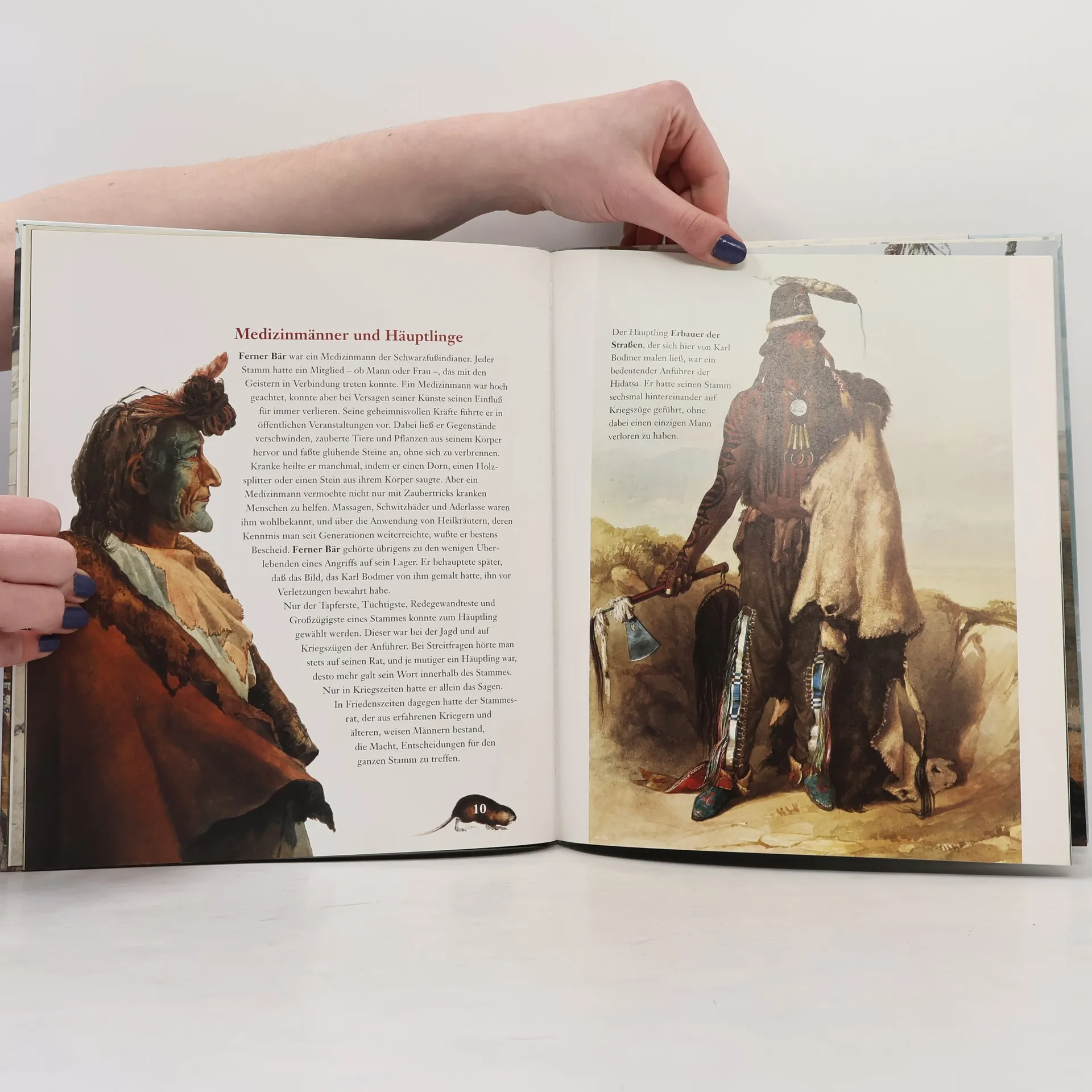 In den Jahren 1832 bis 1834 unternahm der Schweizer Maler Karl Bodmer zusammen mit dem deutschen Naturforscher Prinz Maximilian zu Wied eine Entdeckungsreise zu den Indianerstämmen der Plains und Prärien Nordamerikas. Seine Bilder vom Alltag der Indianer, ihrem Land und den Tieren machten das Leben im 'Wilden Westen' für die Nachwelt unsterblich.