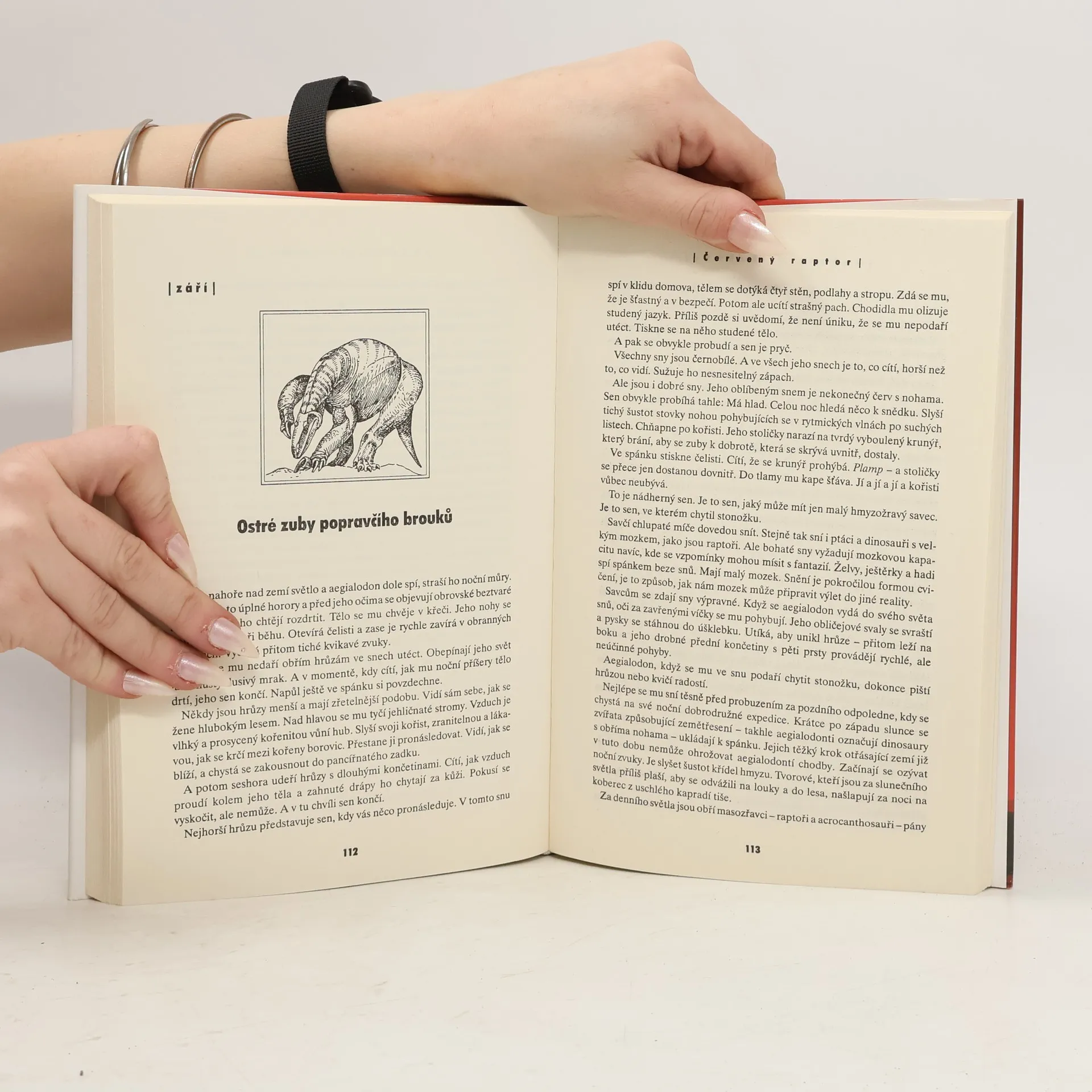 V jednotvárné zeleni nízkých jehličnanů a kapradin, lemující bahnité močály a řečiště, se ukrývá pár dravých, zároveň však krásných očí. V napjaté pozornosti sledují stádo býložravých dinosaurů, kteří se pasou na louce, ukusují listy vysokých stromů a větří. Oči přelétající zepředu dozadu a rychle přehlížející kořist patří lovci, který je schopný o věcech, které uvidí, přemýšlet. Je to inteligentní lovec... Děj knihy je zasazen do dnešního Utahu v období spodní křídy, zhruba před 120 miliony let. Autor vytvořil poutavý příběh založený na interakcích jednotlivých dinosauřích druhů žijících v období křídy v oblasti Utahu, aniž by jim přitom propůjčoval lidskou řeč či lidské vlastnosti, třebaže občas jednoduchými větami či jen pouhými slovy vyjadřoval "překlad" jejich myšlenek a interpretaci jejich řeči těla. Hlavní "postavou" příběhu je samice velkého dromeosaurida utahraptora, která žije svým nebezpečným životem ve světě ostatních dinosaurů i jiných pravěkých tvorů. Příběh je vyprávěn jakoby očima tohoto dravého dinosaura - "raptora". Bakker ve své knize popisuje velmi živým a poutavým jazykem sociální, behaviorální i jiné aspekty života teropodních dinosaurů, zobrazují se zde také jeho vlastní teorie a hypotézy.