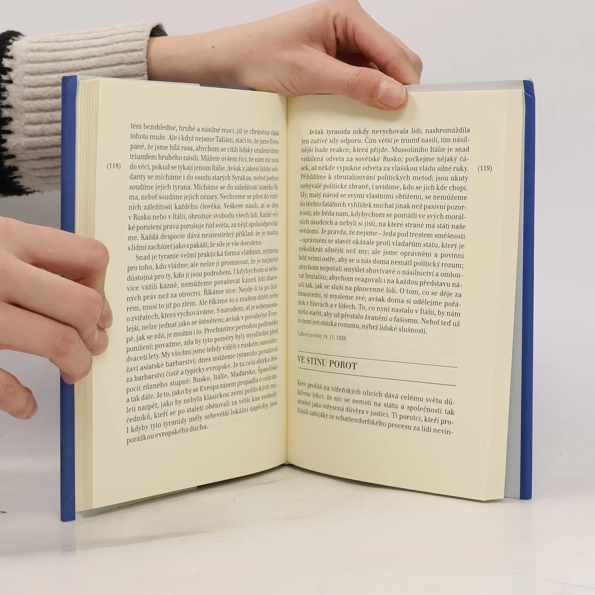 V Čapkových politických statích najdeme kritické analýzy české malosti, provincialismu, kritiku špatného fungování spravedlnosti, pokleslé politické kultury a intrikování politických stran. Zároveň vytyčil Čapek jakési základní normy, které by ti, kdo se považují za duchovní elitu, nikdy neměli opustit. Výbor z publicistických prací uspořádal Ivan Klíma. Uspořádal: Ivan Klíma