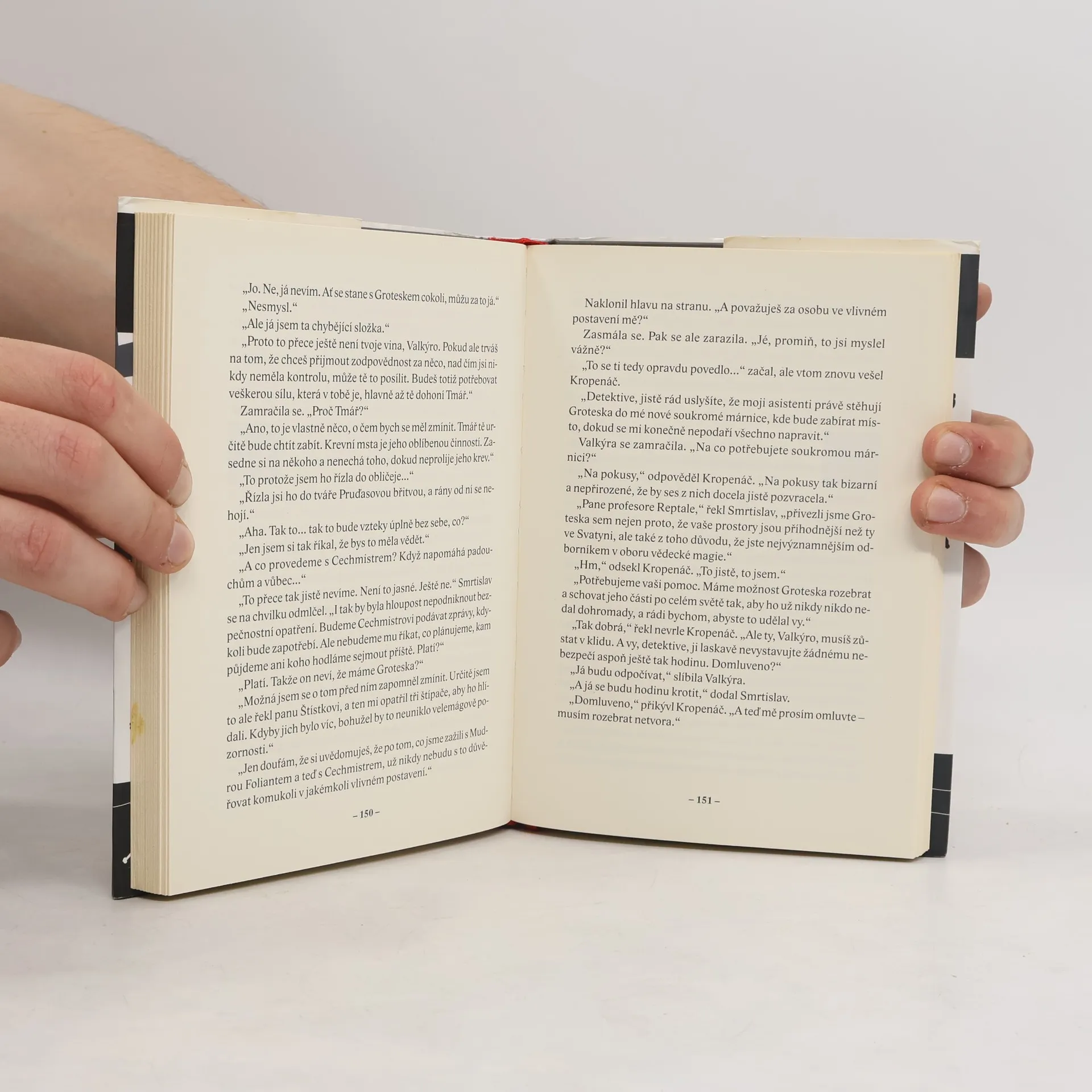 Fantasy příběh pro starší děti. Smrtislav Hezoun je jen kostlivec v dobře padnoucím obleku. To nic nemění na tom, že je i skvělý detektiv, pokud jde o neobvyklé zločiny. Po zničení čaroděje Hadovce nastávají pro Smrtislava a jeho učednici Valkýru celkem klidné časy. Občas chytí nějakého malého darebáčka, ale to je tak vše. Situace se však změní, když z vězení unikne nebezpečný baron Mstislav, velký fanatický příznivec Beztvárných. Na Smrtislavovi a Valkýře je chytit ho dřív než oživí monstrum Groteska a s jeho pomocí otevře bránu skrz skutečnosti.