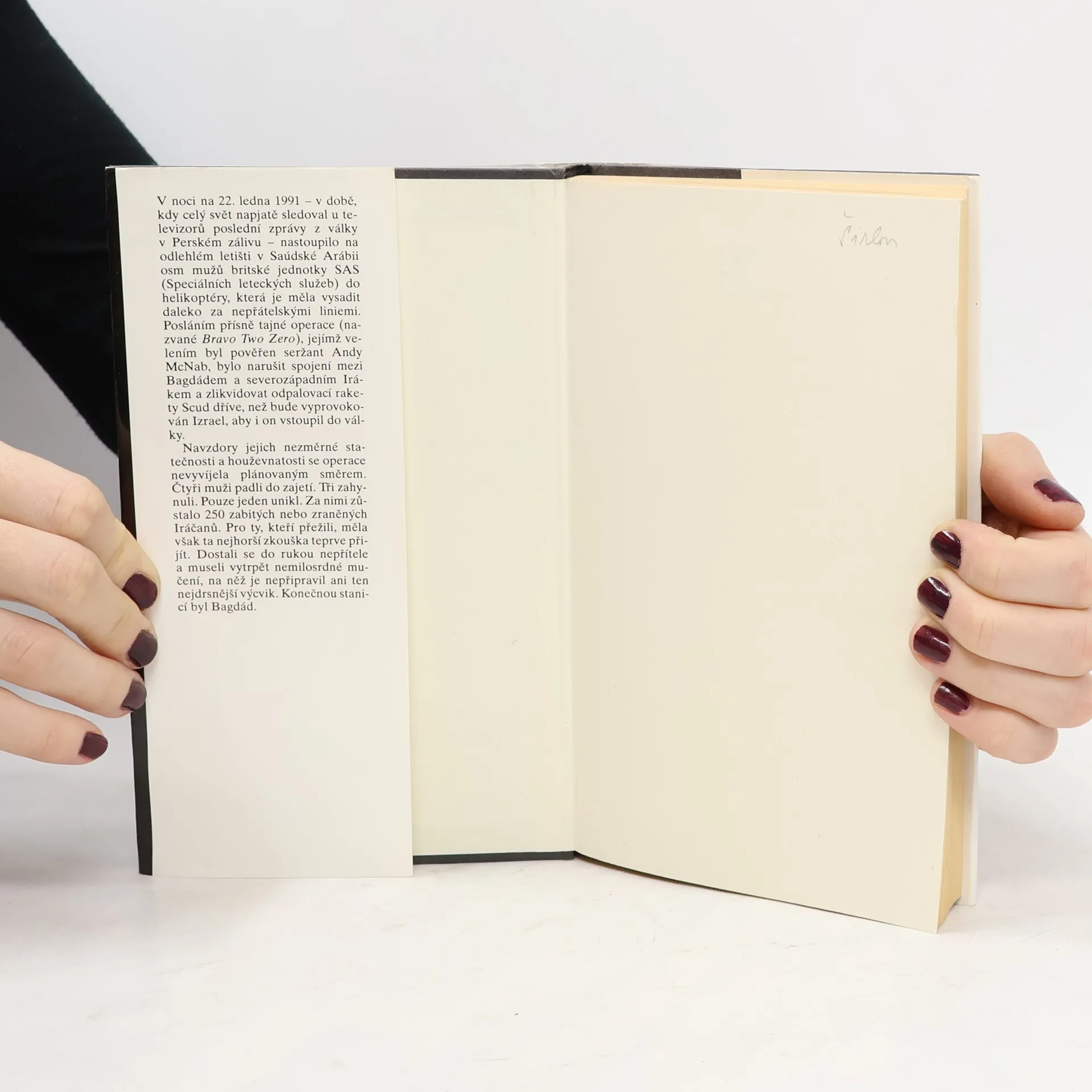 V noci 22. ledna 1991 - tedy v době, kdy celý svět napjatě sledoval u televizorů nejnovější zprávy z války v Perském zálivu - nastoupilo na odlehlém letišti v Saúdské Arábii osm mužů britské jednotky SAS do helikoptéry, která je měla vysadit hluboko za nepřátelskými liniemi. Posláním přísně tajné operace, jejímž velením byl pověřen seržant Andy McNab, bylo narušit spojení mezi Bagdádem a severozápadním Irákem a zlikvidovat odpalovací rakety Scud dříve, než bude vyprovokován Izrael, aby rovněž vstoupil do války. Navzdory nezměrné statečnosti a houževnatosti McNabových lidí se operace nevyvíjela podle plánu. Čtyři muži padli do zajetí. Tři zahynuli. Pouze jeden unikl. Za nimi zůstalo na dvě stě padesát zabitých nebo zraněných Iráčanů. Pro ty Brity, ze kterých se stali zajatci, však měla nejhorší zkouška teprve přijít. Padli do rukou nepřítele a museli vytrpět nemilosrdné mučení, na jaké je dopředu nemohl připravit ani ten nejdrsnější výcvik. Konečnou stanicí byl Bagdád.