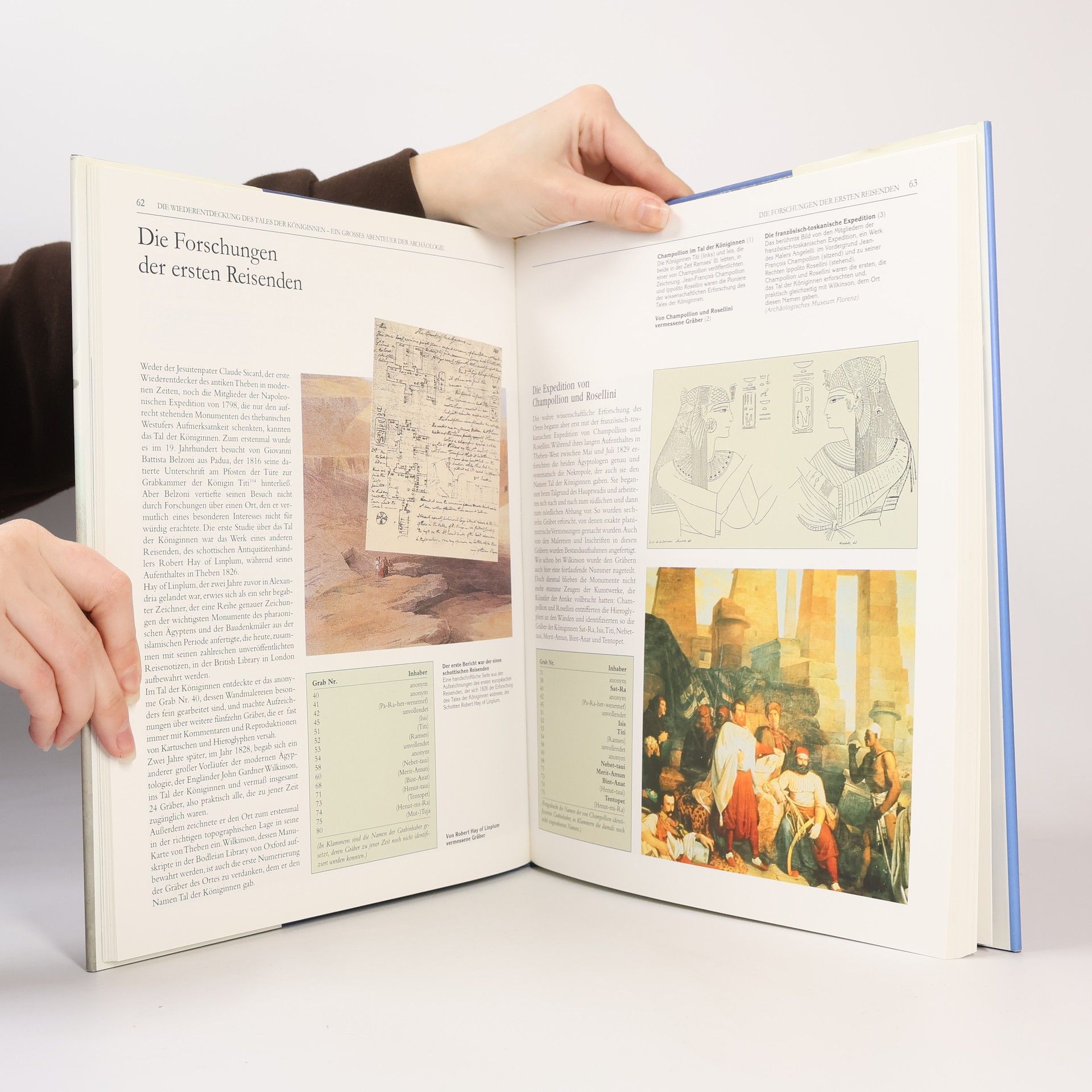 "Das Tal der Königinnen", in dem sich auch die hier ausführlich dokumentierte Grabanlage Nefertaris, der "Großen Königlichen Gemahlin" Ramses' II. befindet, lag stets im Schatten vom "Tal der Könige" (BA 7/97) - vgl. auch Jacq (BA 2/99) und Weeks "Ramses II" (BA 6/99) - und wurde seit 1907 durch italienische Archäologen gründlich erforscht. Der großformatige Band stellt anschaulich die Grabungsergebnisse dar, unterstützt durch reichhaltiges und informatives Bildmaterial, das in Farbtafeln, Grundrissen und Skizzen einen plastischen Eindruck der trotz Erosion und Plünderungen spürbaren Pracht einzelner Gräber vermittelt und die religiösen Grundlagen des Totenkultes deutlich macht. Daneben werden architektonische Fragen und Probleme bei der Restaurierung des Nefertarigrabes erörtert. Als "Gegengewicht" zu den oben genannten Titeln unbedingt empfehlenswert. (2) (Erdmann Steinmetz)