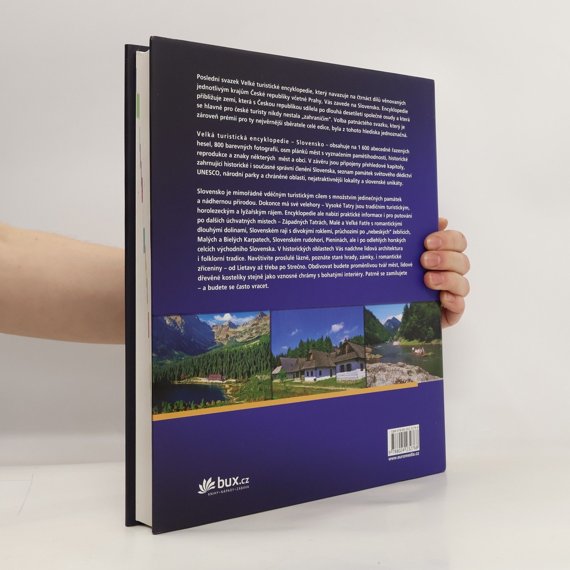 Poslední část Velké turistické encyklopedie opouští hranice České republiky a vydává se na území, které bylo téměř 85 let součástí Československa. Představuje Slovensko v celé jeho rozmanitosti a bohatosti - přibližuje lidská sídla od nejmenších vesniček po hlavní město Bratislavu s jejich historií, památkami, kulturou a tradicemi stejně jako přírodní krásy od Podunajské nížiny na jihu území až po velehory s malebnými dolinami na severu území. Neopomíjí ani četná chráněná území a lokality zapsané na Seznam světového kulturního a přírodního dědictví UNESCO. Encyklopedie je nepostradatelným zdrojem informací a také inspirací k návštěvě a hlubšímu poznání této nádherné země.