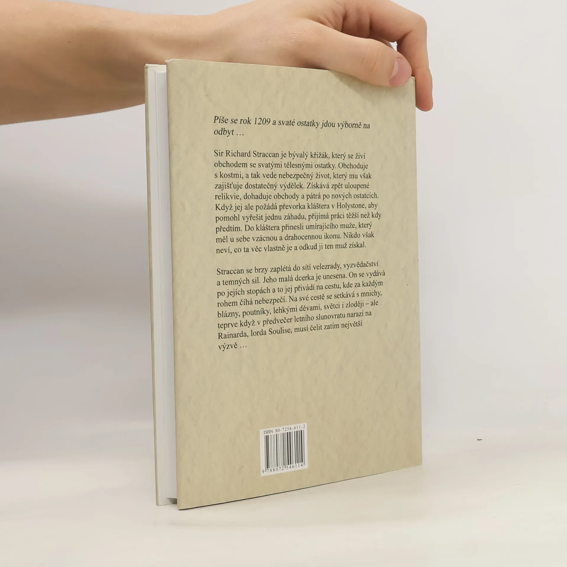 Píše se rok 1209 a svaté ostatky jdou výborně na odbyt… Sir Richard Straccan je bývalý křižák, který se živí obchodem se svatými tělesnými ostatky. Obchoduje s kostmi, a tak vede nebezpečný život, který mu však zajišťuje dostatečný výdělek. Získává zpět uloupené relikvie, dohaduje obchody a pátrá po nových ostatcích. Když jej ale požádá převorka kláštera v Holystone, aby pomohl vyřešit jednu záhadu, přijímá práci těžší než kdy předtím. Do kláštera přinesli umírajícího muže, který měl u sebe vzácnou a drahocennou ikonu. Nikdo však neví, co ta věc vlastně je a odkud ji ten muž získal. Straccan se brzy zaplétá do sítí velezrady, vyzvědačství a temných sil. Jeho malá dcerka je unesena. On se vydává po jejích stopách a to jej přivádí na cestu, kde za každým rohem číhá nebezpečí. Na své cestě se setkává s mnichy, blázny, poutníky, lehkými děvami, světci i zloději – ale teprve když v předvečer letního slunovratu narazí na Rainarda, lorda Soulise, musí čelit zatím největší výzvě… -- zdroj: legie.info --
