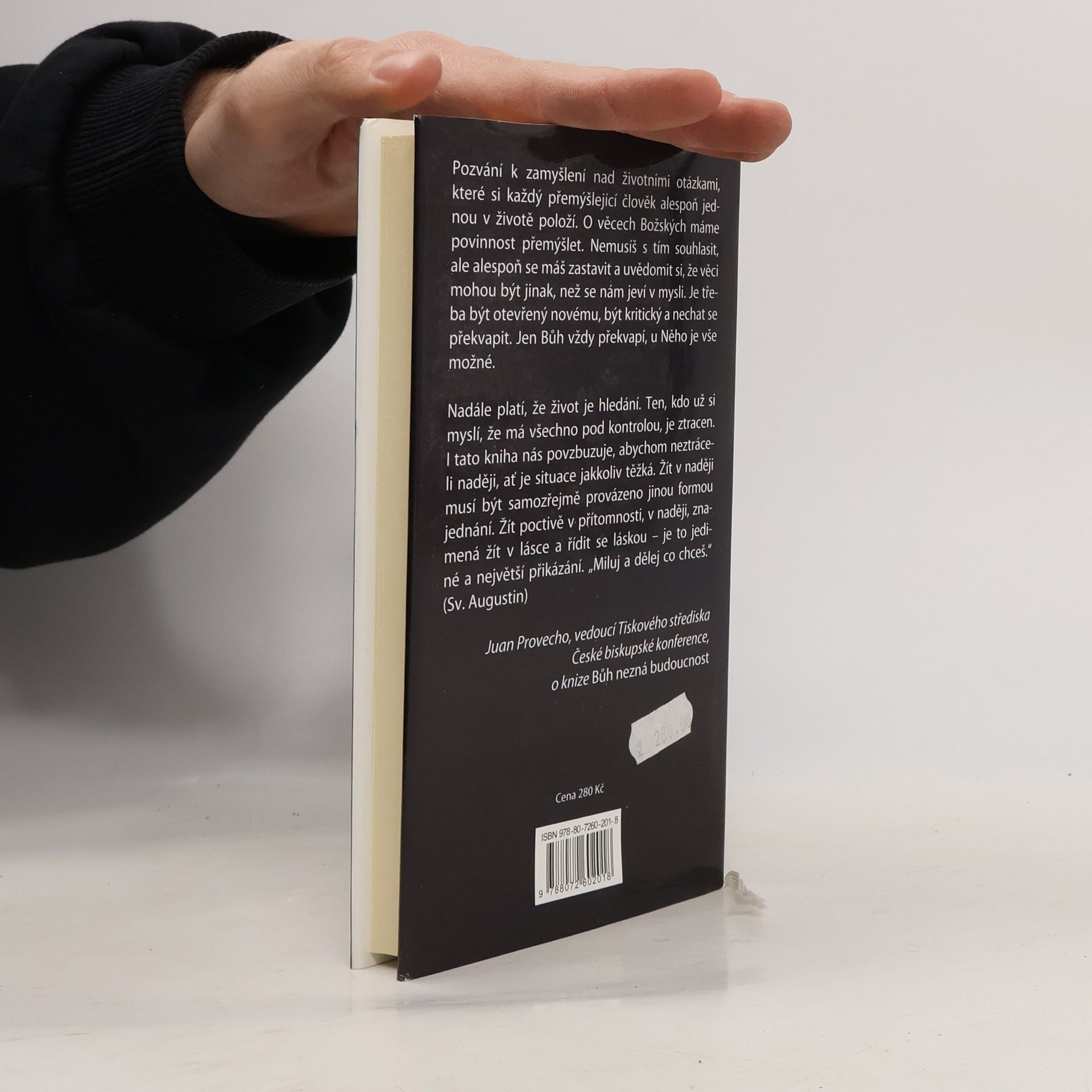 Nyní předstupuje před čtenáře v odlišné roli – jako člověk tázající se po věcech víry, po Bohu a smyslu života, tedy po něčem, co je v naší kultuře považováno za výsostně osobní, neveřejné, ba intimní. Komárek se záměrně nepokouší o teologický traktát ani o nějaké teoreticko- filozofi cké pojednání. O Bohu, víře, církvi a tzv. posledních věcech člověka, tj. smrti a umírání, posmrtném životě, peklu a ráji, píše jako o něčem vnitřně naléhavém a osobně prožívaném. Jeho metodou je přirozená logika, respektive „zdravý selský rozum“, a zajímají ho jen takové otázky a odpovědi, které mají nějaký živý smysl pro člověka, a nikoli pro teoretické disputace. Netváří se přitom, že zná všechny odpovědi – naopak mnohokrát říká „možná“, „pravděpodobně“, „nevím“. Autorovy úvahy mohou být pro mnohé – jak věřící, tak nevěřící – pohoršující a pobuřující. Opravdu nic mu není takříkajíc svaté, avšak jeho provokativnost v tomto případě není prvoplánová. Vyplývá spíše z upřímnosti a bezpředsudečnosti, s níž k tématu přistupuje. Proto také jeho knížka se čtenářem „hovoří“ – je otevřeným dialogem o nejpodstatnějších věcech lidského života, jeho smyslu, víře, smrti a nesmrtelnosti. --------------------------------------------------------------------------------