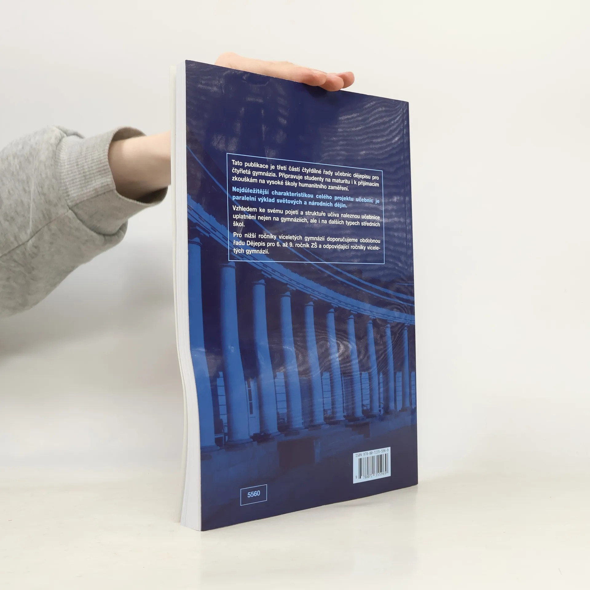 Třetí z řady učebnic dějepisu pro gymnázia a střední školy – uplatní se především na gymnáziích, ale i na dalších typech škol, neboť je v učebnicích graficky odlišen základní výklad od rozšiřujícího textu. Vzhledem k rozvržení učiva s důrazem na nové dějiny umožňuje i dobrou přípravu na VŠ. Kladem řady je její nepřetíženost fakty a především paralelně vedený výklad světových i českých dějin od nejstarších dob po současnost. Učebnice obsahují bohatý obrazový materiál, početné dějepisné mapy a náležitý didaktický aparát. Přední východ ●., Egypt ●., starověké Řecko ●., starověký Řím ●., Indie ●., Čína