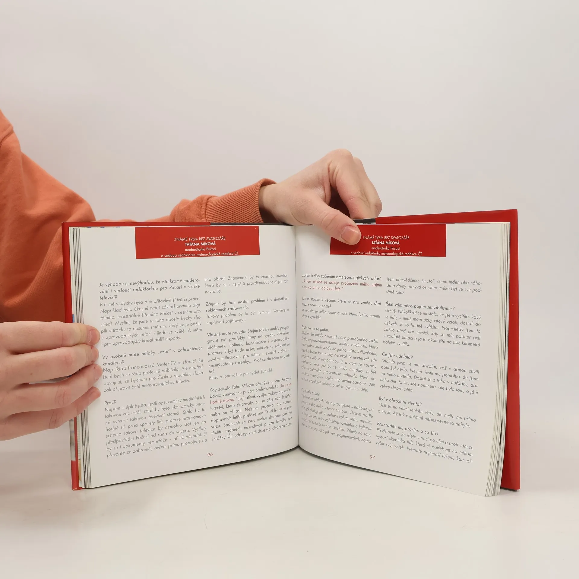 Prostřednictvím obrazovky vstupují do našich domovů známé tváře televizních moderátorů. Kniha rozhovorů s deseti obdivovanými mediálními osobnostmi a generálním ředitelem České televize (také bývalým televizním moderátorem) nás na oplátku vpustí do jejich soukromí – dá nám nahlédnout do zákulisí jejich profese a především do jejich životních osudů, názorů a vztahů. Každý z rozhovorů je doprovázen dosud nepublikovanými fotografiemi z rodinných alb zpovídaných.