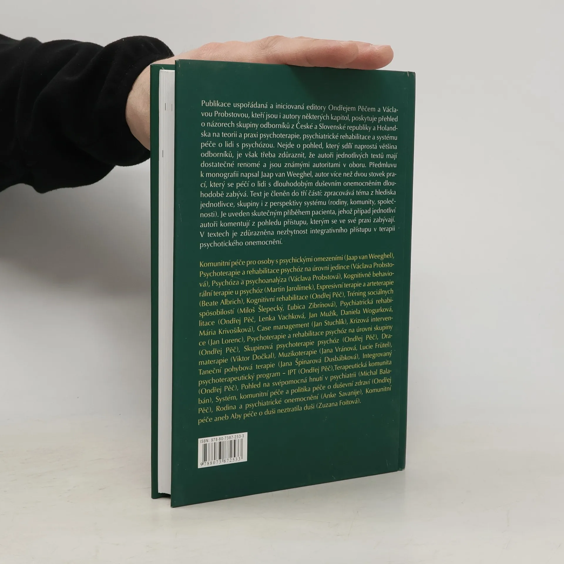 Publikace uspořádaná a iniciovaná editory Ondřejem Pěčem a Václavou Probstovou, kteří jsou i autory některých kapitol, poskytuje přehled o názorech skupiny odborníků z České a Slovenské republiky a Holandska na teorii a praxi psychoterapie, psychiatrické rehabilitace a systému péče o lidi s psychózou. Nejde o pohled, který sdílí naprostá většina odborníků, je však třeba zdůraznit, že autoři jednotlivých textů mají dostatečné renomé a jsou známými autoritami v oboru.