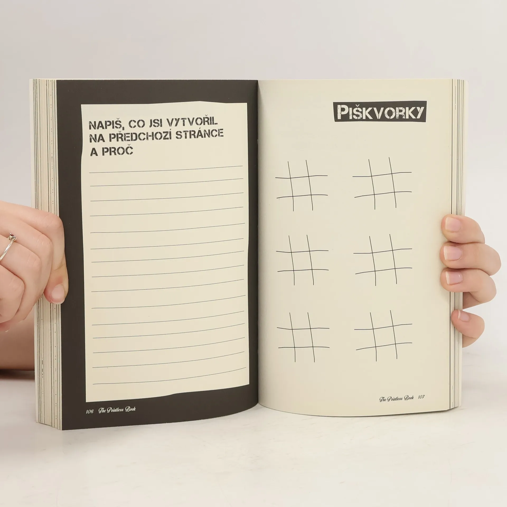 Tahle úplně mimo knížka z pera youtubového vlogera Alfieho Deyese - The Pointless Book - je dokonalým doplňkem k jeho kanálu na Youtube - ujetého a srandovního video-deníčku plného humoru, výzev a nicotností: upeč si dort v hrnečku, zúčastni se výzvy ke sledování lidí, udělej si časovou schránku, vytvoř deník jednoho týdne svého života, nauč se skládat origami. S knížkou plnou her, aktivit a různých srandiček nezbývá, než se přidat k Alfieho on-line publiku, vytvořit si úplně mimoidní památníček a s patřičnou hrdostí dělat samé neužitečné věci.