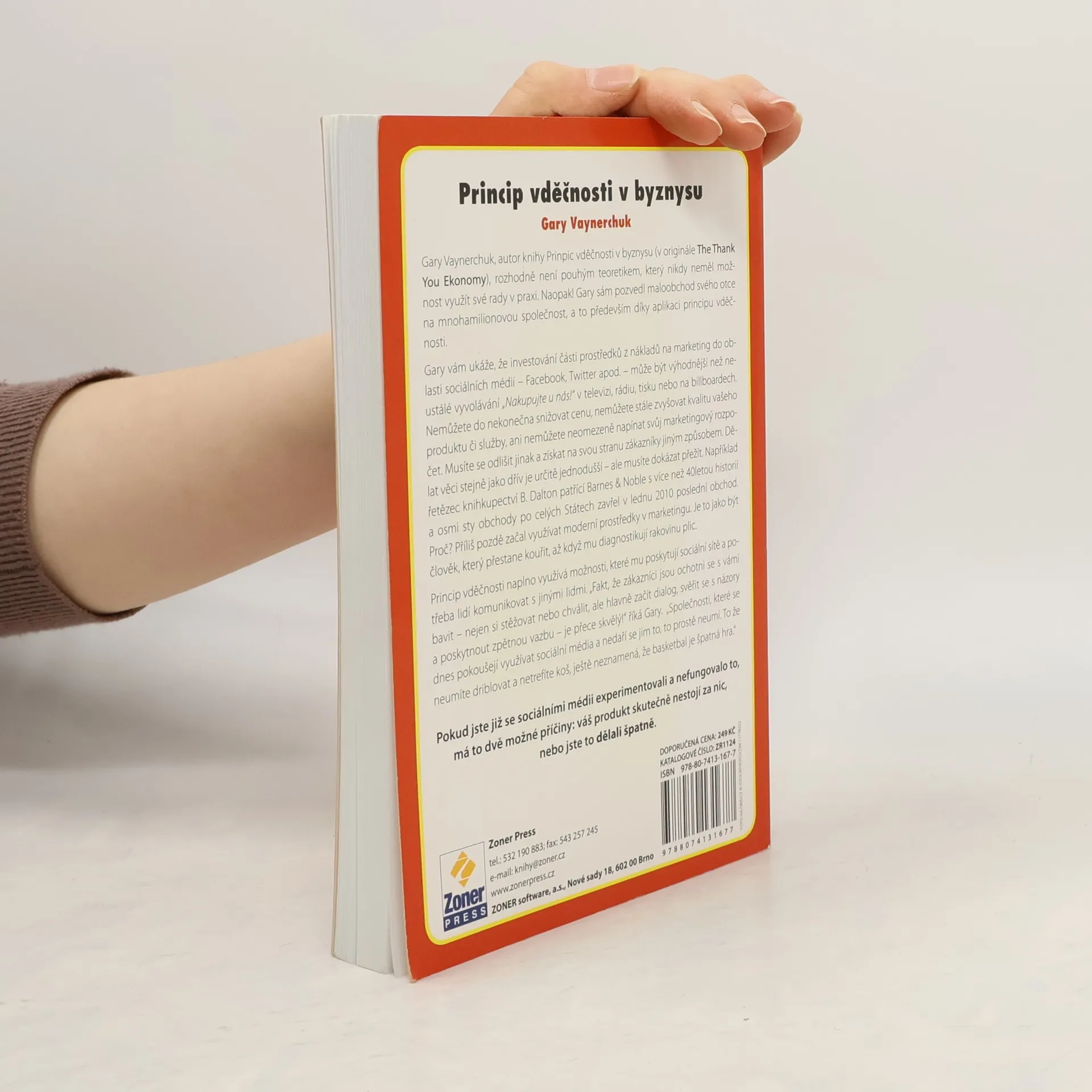 Autor vám ukáže, že investování části prostředků z nákladu na marketing do oblasti sociálních médií - facebook, Twitter apod. - může být výhodnější než neustálé vyvolávání sloganu "Nakupujte u nás.!" v televizi, rádiu, tisku, nebo na billboardech. Nemůžete do nekonečna snižovat cenu, nemůžete stále zvyšovat kvalitu vašeho produktu či služby