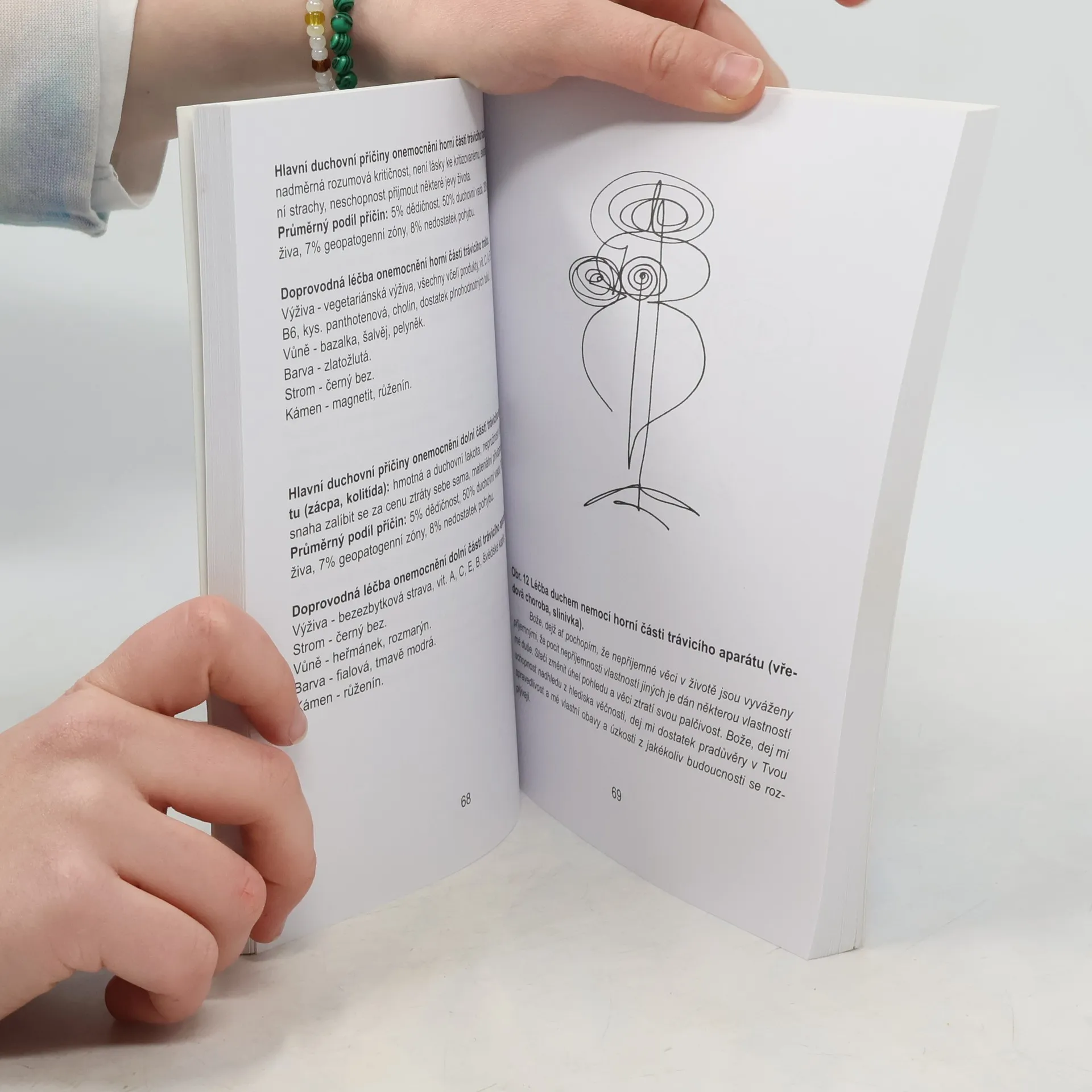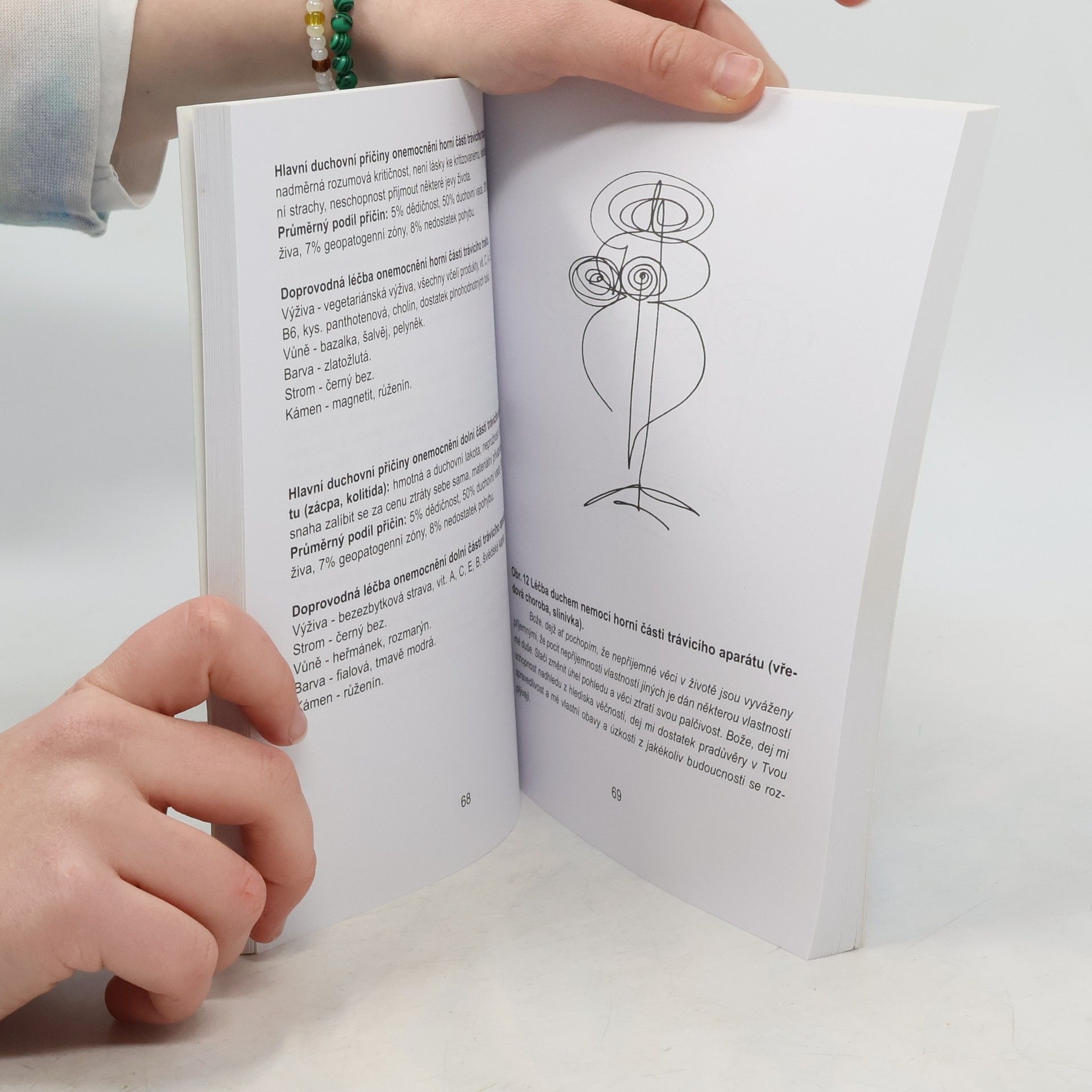 Současná medicína sice detailně popíše tělo člověka a průběh procesů nemocí, není však schopna odpovědět, proč člověk žije a proč je nemocen. Těmito otázkami se mohou zabývat jen ty obory, jejichž předmětem poznání jsou dimenze bytí, které byly ještě před vznikem hmotného. Tato dimenze je označována jako duchovní a základním způsobem jejího nazírání na veškeré dění je z hlediska věčnosti Knih, popisujících duchovní příčiny nemocí, je mnoho. Mnohé vyšly i u nás v překladu. Za nejlepší je možné jmenovat Dethlefsenovu „Nemoc jako cestu“ a Lazarevovu „Diagnostiku karmy“. Avšak žádná z těchto knih, které se ve světě a u nás tímto tématem zabývají, neobsahuje to, co obsahuje navíc tato kniha: praktický návod na východisko ze situace, to jest meditační modlitbu – mantru, zaměřenou na neutralizaci špatného duchovního směřování člověka, které zmíněnou nemoc vyvolalo. Tato mantra je vypsána vždy pod vyzařujícími obrázky, které jsou v knize uvedeny pro většinu hlavních nemocí. Její prožití a stálé opakování časem zneutralizuje v našem podvědomí i nadvědomí vlastní duchovní příčiny nemocí, nemoc přestane dostávat vadné impulsy ducha, špatný směr myšlení vyhasne. Nemoc se vyhojí v duši a následně i na těle. Metody léčení obrázky a meditační modlitbou se nijakým způsobem nekříží s tradiční medicínou. Je to rozšíření léčby o duchovní úroveň.... celý text