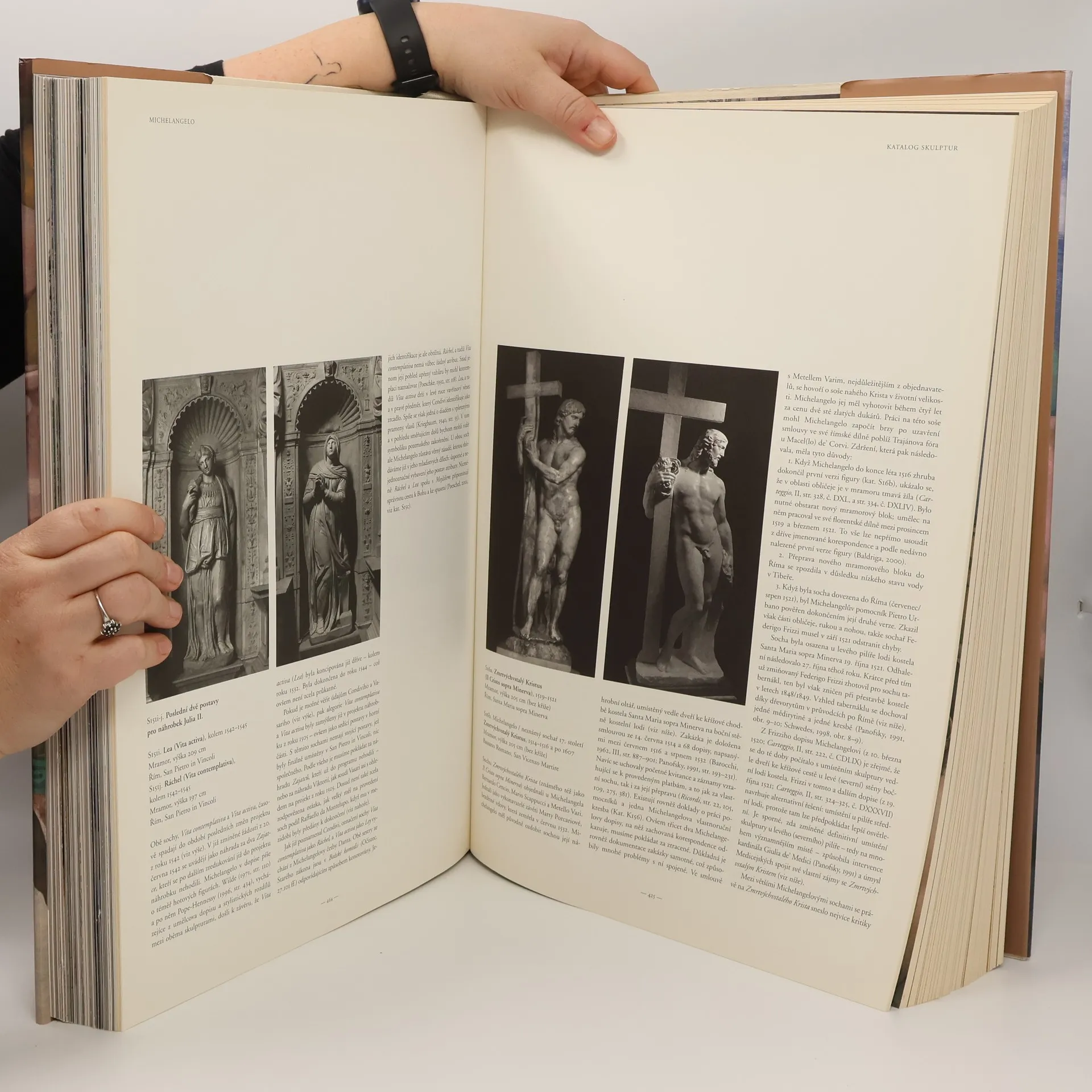 Po úspěchu, jaký sklidil rozměrný knižní artefakt Leonardo da Vinci, vychází v českém překladu také úplné dílo Michelangela Buonarrotiho. První část této velkolepé knihy zobrazuje umělcův život, a to formou rozsáhlého a bohatě ilustrovaného eseje. Těžištěm knihy je ovšem samotné Michelagelovo dílo, jehož labyrintem je čtenář provázen. Celistvý přehled děl a jejich podrobný komentář je rozdělen do čtyř oddílů, jejichž obsahem je 7 maleb (včetně fresky Posledního soudu a výzdoby stropu v Sixtinské kapli), 44 soch, 535 kreseb a 24 staveb. Nádherné celostránkové reprodukce a zvětšeniny detailů ještě více umocní čtenářův dojem. Kniha vychází k 500. výročí od započetí Michelangelovy výzdoby Sixtinské kaple.