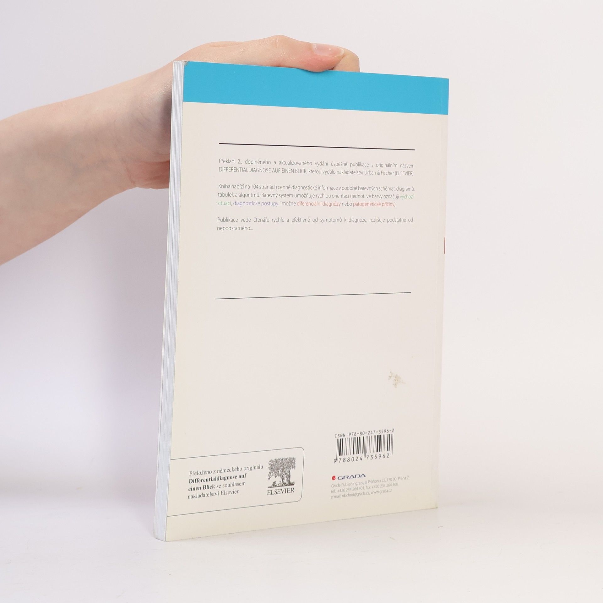 Překlad 2., doplněného a aktualizovaného vydání úspěšné publikace DIFFERENTIAL-DIAGNOSE AUF EINEN BLICK, kterou vydalo nakladatelství Urban & Fischer (ELSEVIER). Kniha nabízí na 104 stranách cenné diagnostické informace v podobě barevných schémat, diagramů, tabulek a algoritmů, které má mít téměř každý lékař, medik, nebo dokonce zdravotní sestra stále po ruce. V publikaci najdete stručné návody, jak postupovat v situacích, jako je např. ascites, horečka, krvácení apod. Publikace vede čtenáře rychle a efektivně od symptomů k diagnóze, rozlišuje podstatné a nepodstatné.